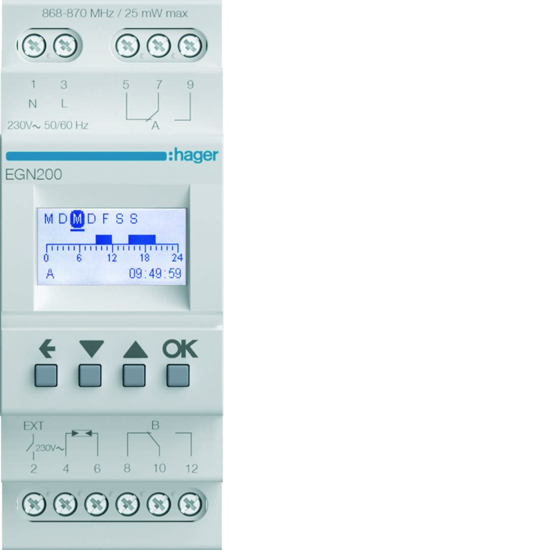 Hager - Interrupteur horaire électronique 2 voies annuelle, astro, crépusculaire, BLE - EGN200