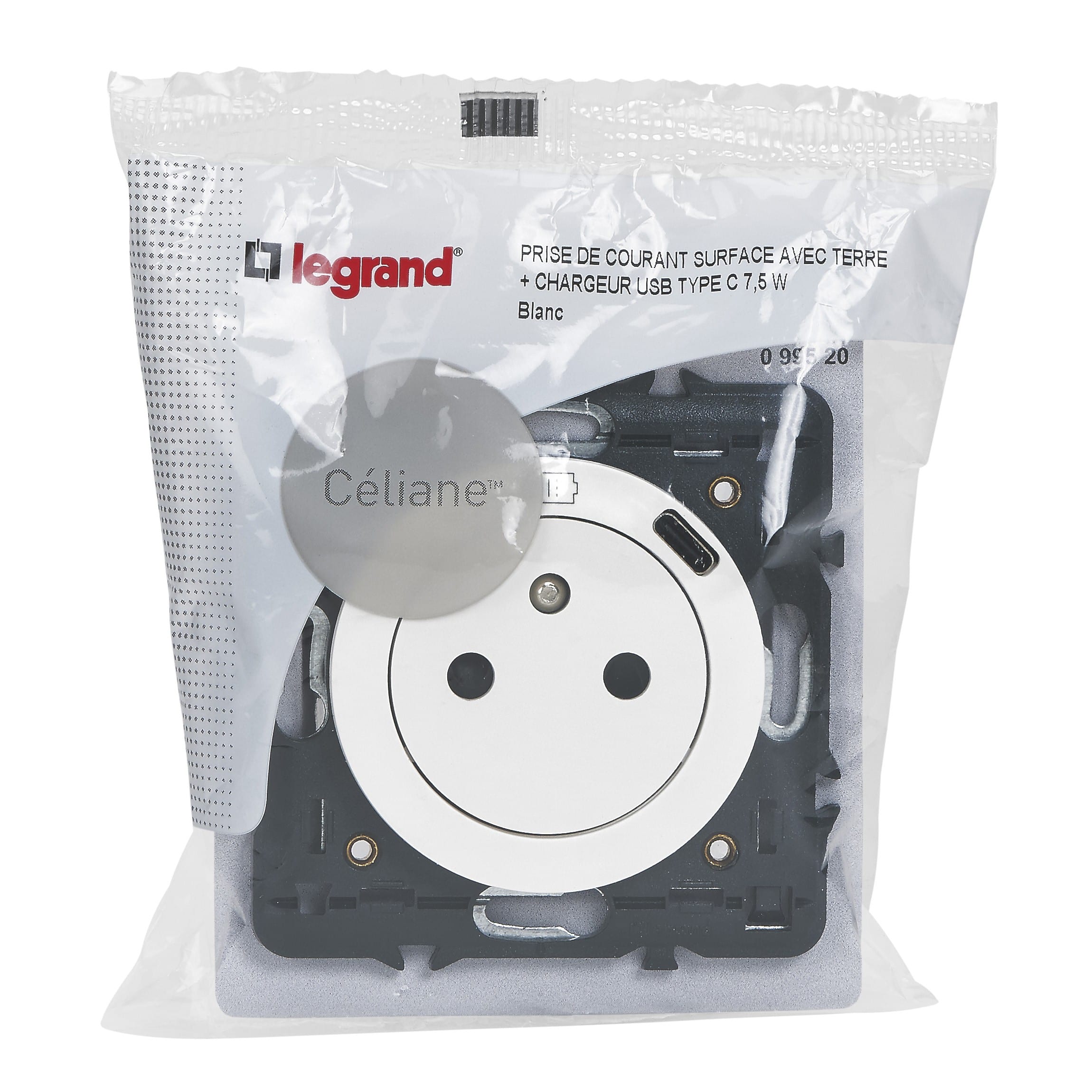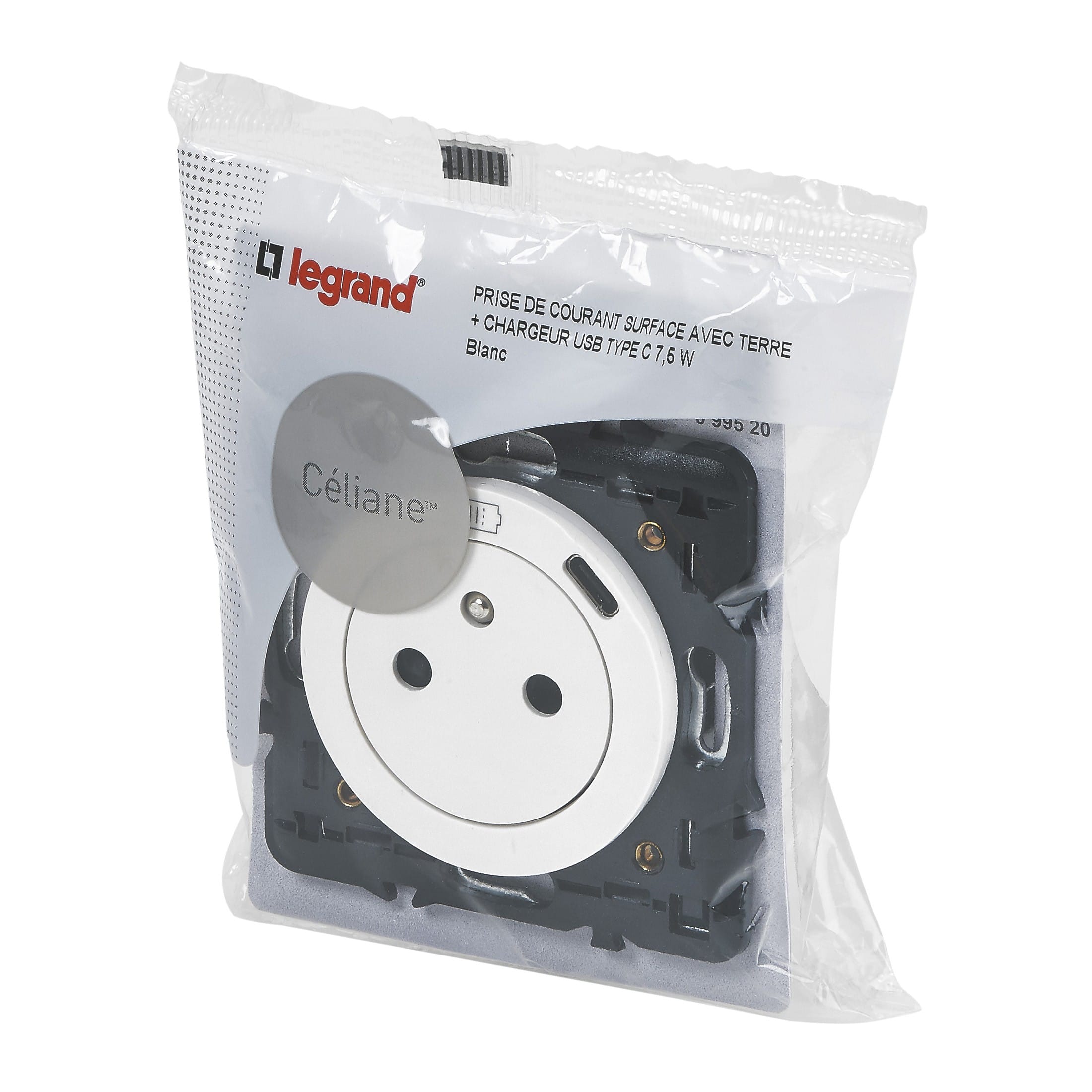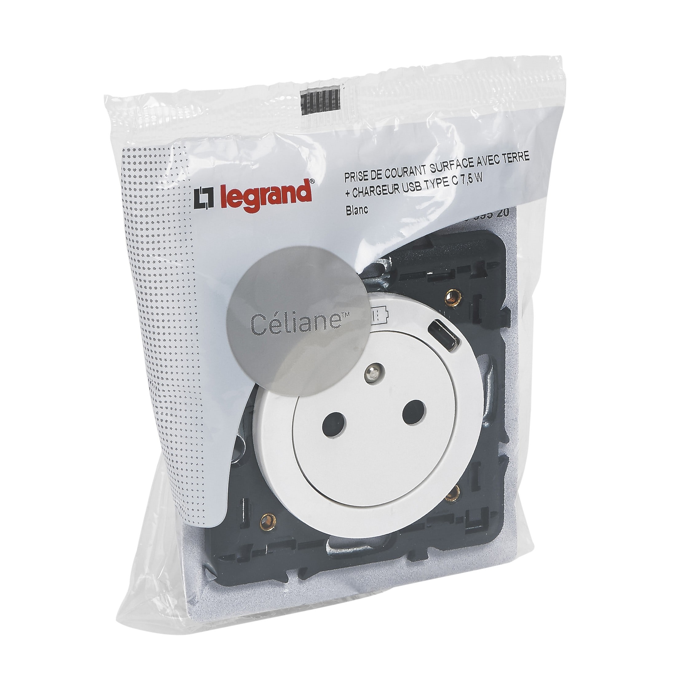 Legrand - Prise Surface Céliane avec chargeur USB en face avant Type-C - 7,5W - Blanc - 099520