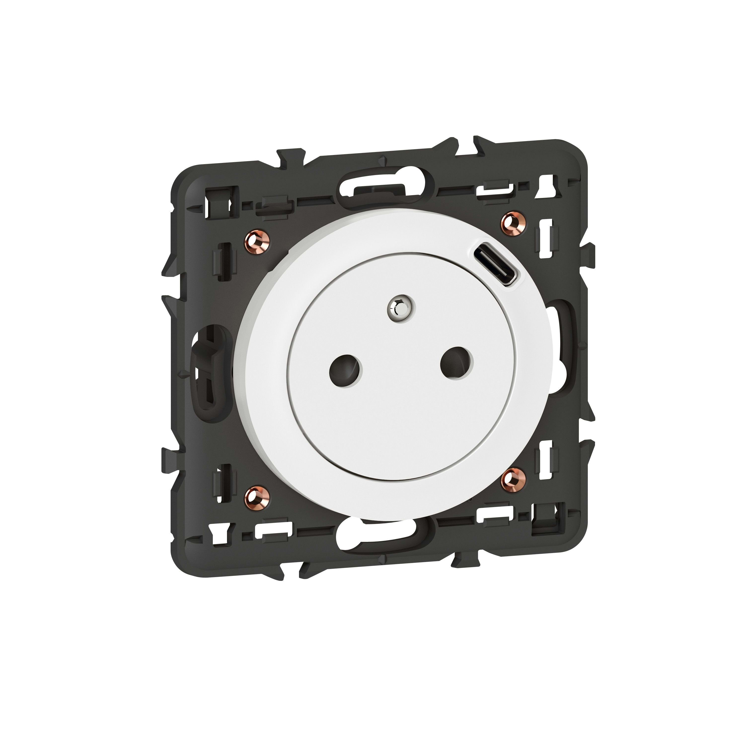 Prise de courant Surface avec terre et chargeur USB Type-C intégré en face avant Céliane - livrée avec support et enjoliveur blanc, à équiper d'une plaque de finition 1 poste