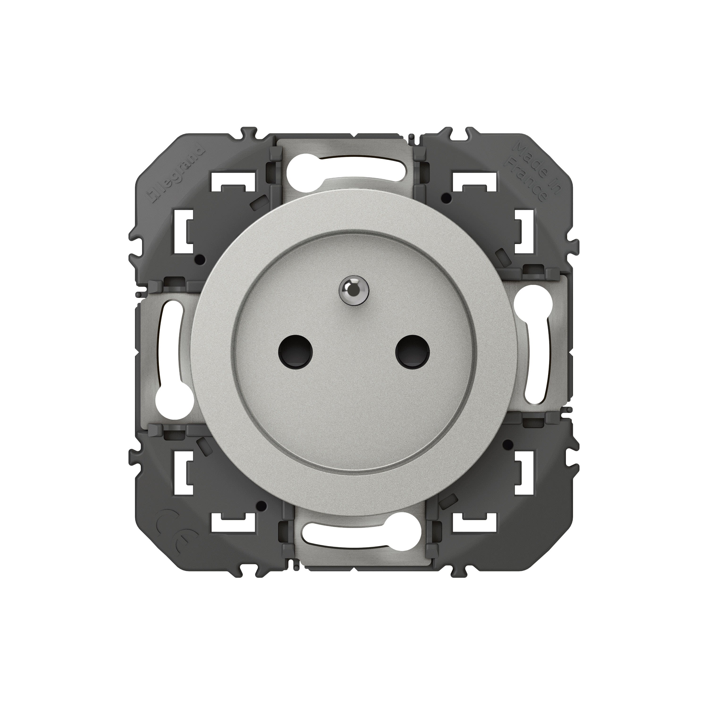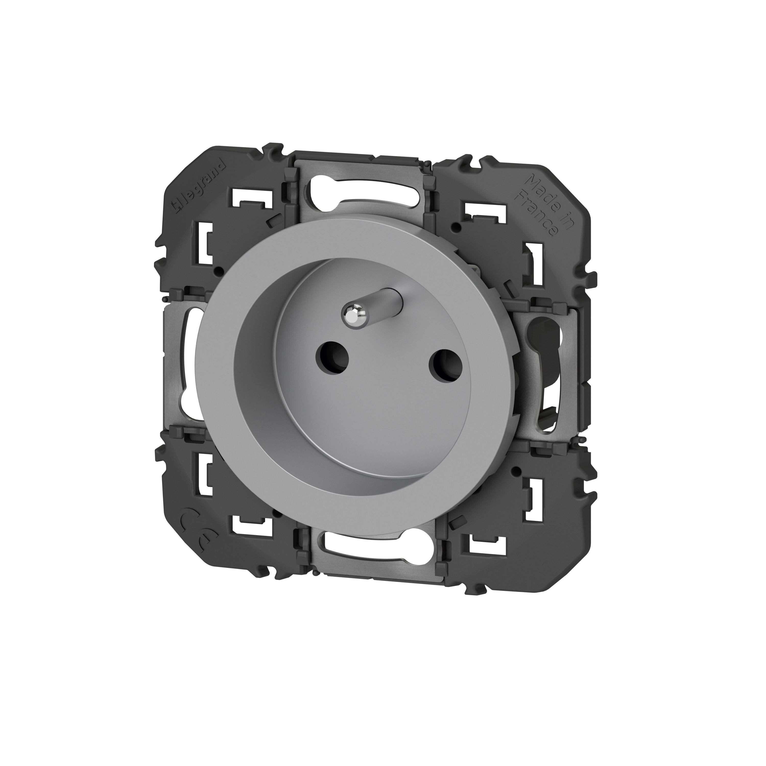 Prise de courant à puits dooxie 16A finition effet aluminium équipée d'un support - à équiper de plaque de finition