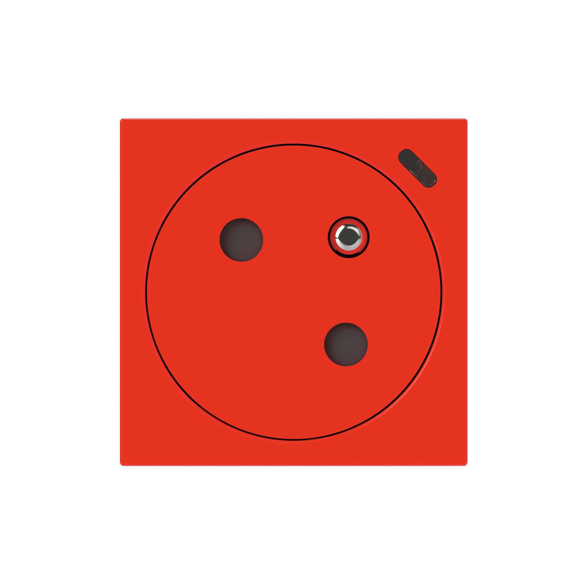 Prise de courant 2P+T Surface à voyant Mosaic Link 16A 230V à connexion latérale par bornes automatiques bi-stables - À équiper d'un support et d'une plaque Mosaic 2 modules - Rouge L'inclinaison à 45° des puits de prise permet de gagner de la place lors du branchement de plusieurs appareils electriques ou electroniques volumineux Résistance aux chocs renforcée : indice IK07 Connexion par bornes automatiques à levier permettant la connexion rapide sans outil