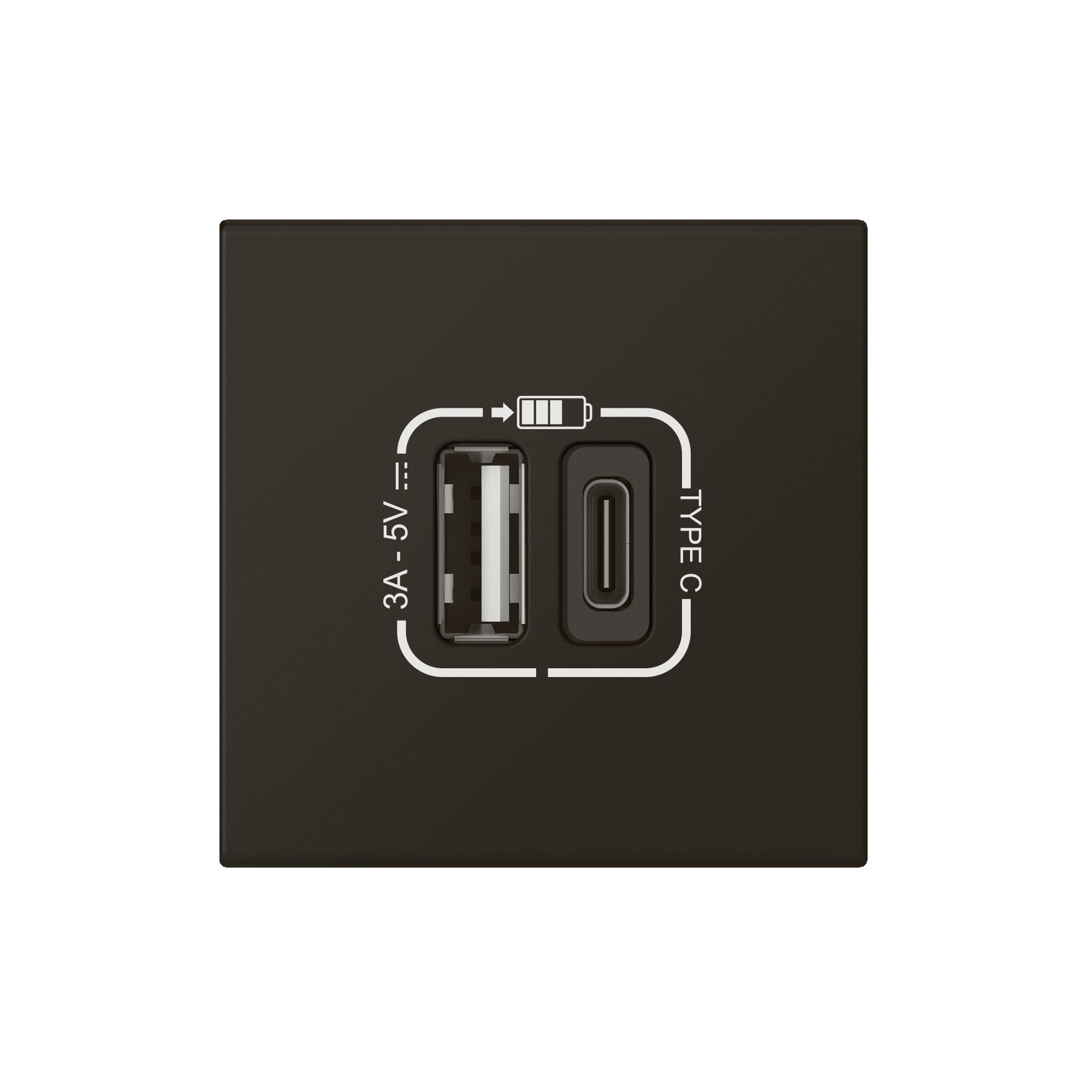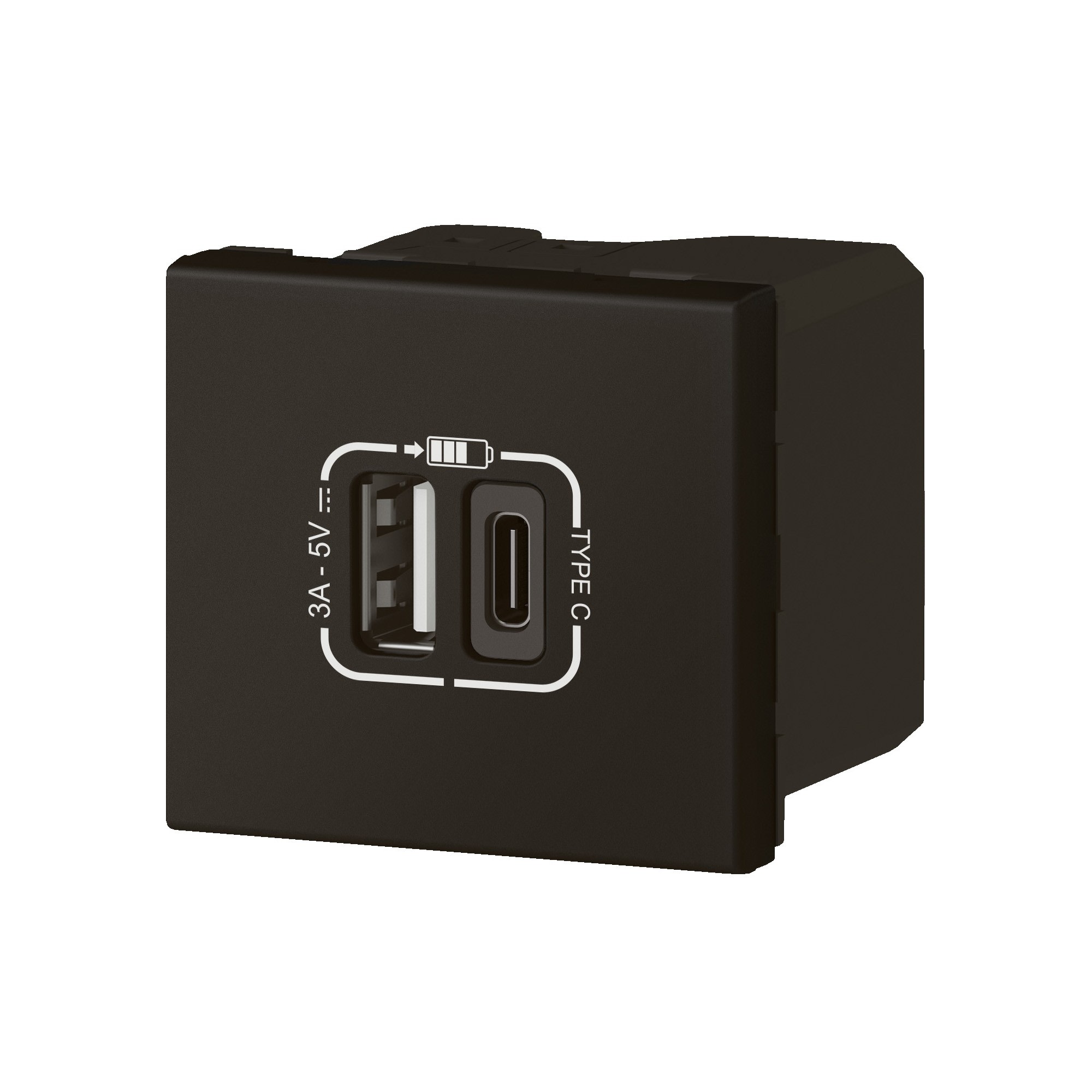 Chargeur USB Type-A + Type-C Mosaic Link à connexion latérale par bornes automatiques bi-stables - À équiper d'un support et d'une plaque Mosaic conforme à la directive CEE sur l'harmonisation du standard de recharge de terminaux portables et la réduction des chargeurs mobiles 2 modules - Noir mat RAL9017 Les 2 sorties USB en 1 poste libèrent un puits de prise et favorisent le gain de place - Le pictogramme (dessin d'une batterie), en face avant, indique que la prise est dédiée à la charge Consommation en veille inférieure à 0,07W - Autoprotégé contre les surtensions réseau Conforme à la directive CEE sur l'harmonisation du standard de recharge de terminaux portables et la réduction des chargeurs mobiles