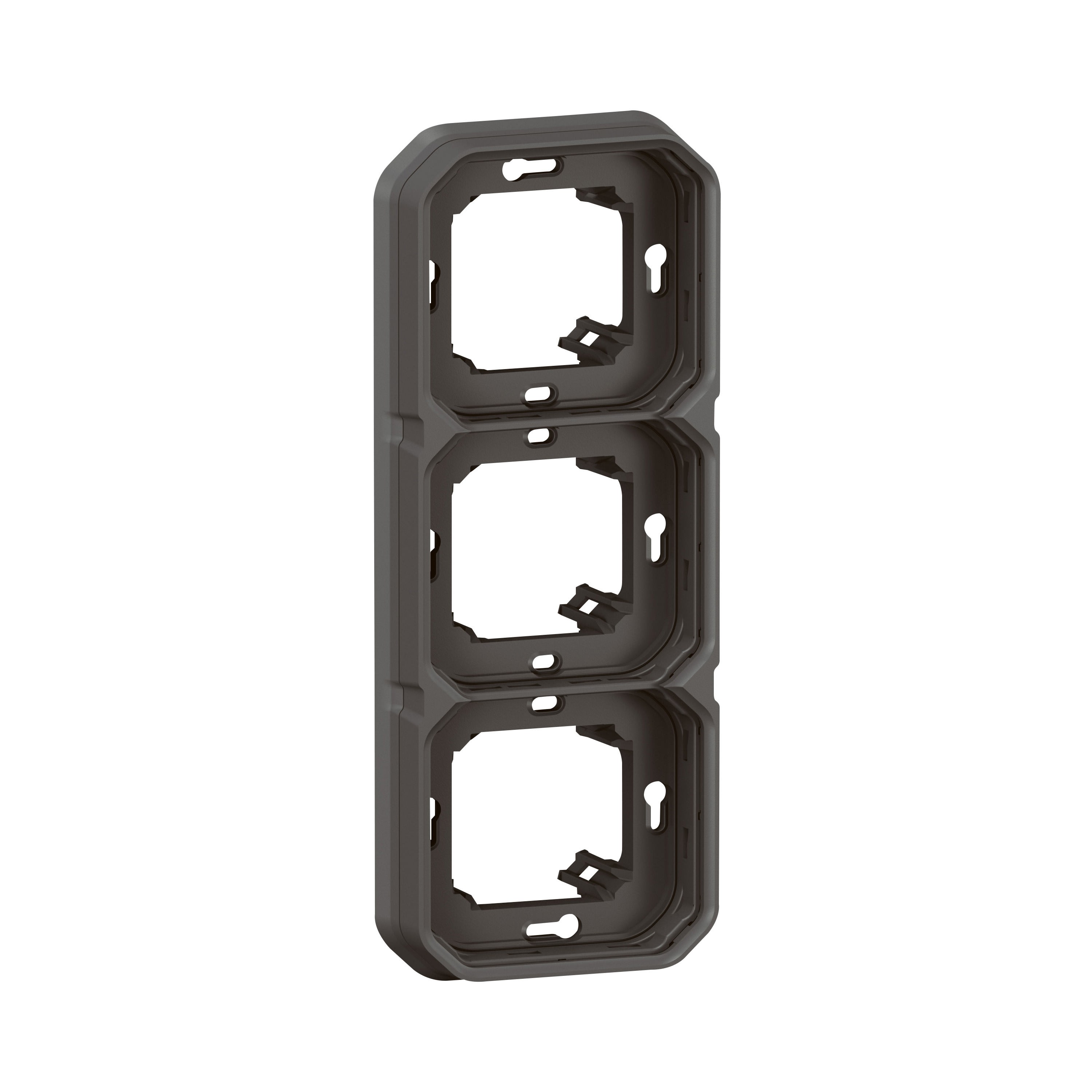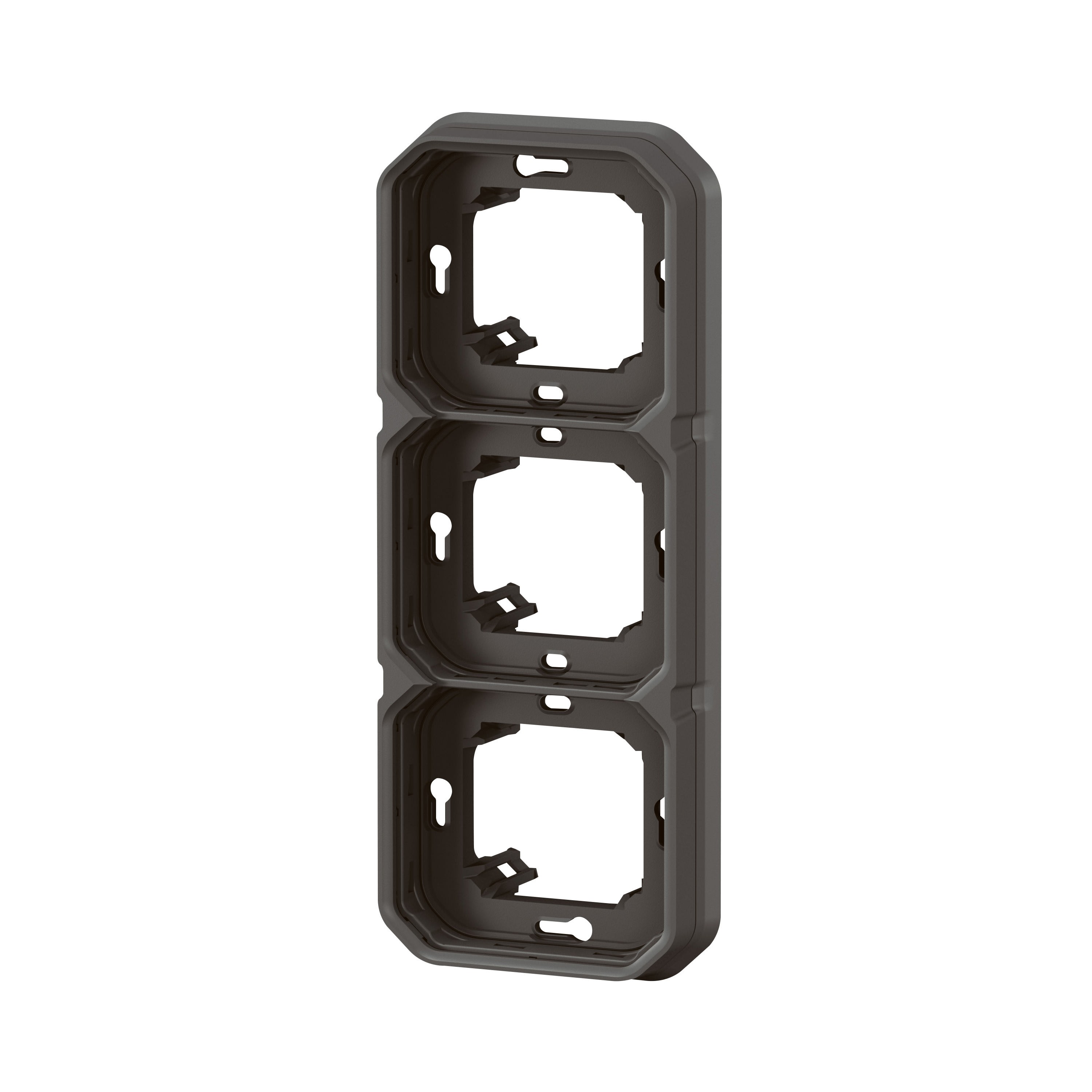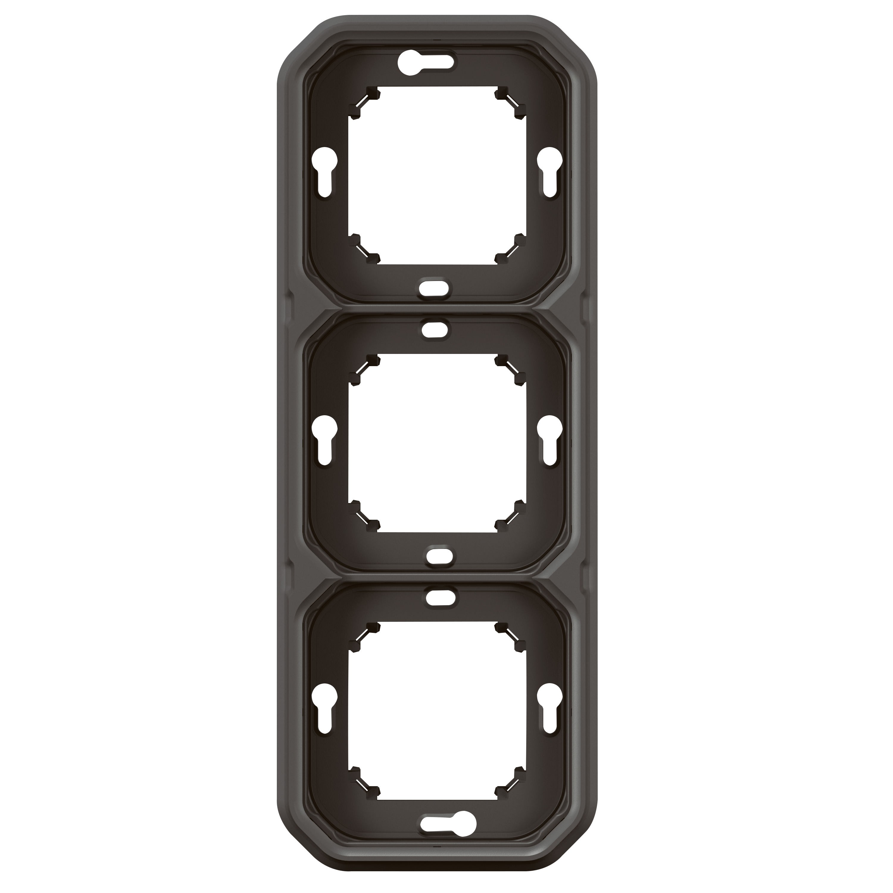 Support plaque étanche pour montage horizontal ou vertical en encastré avec boîte d'encastrement 3 postes de fonctions Plexo - anthracite
