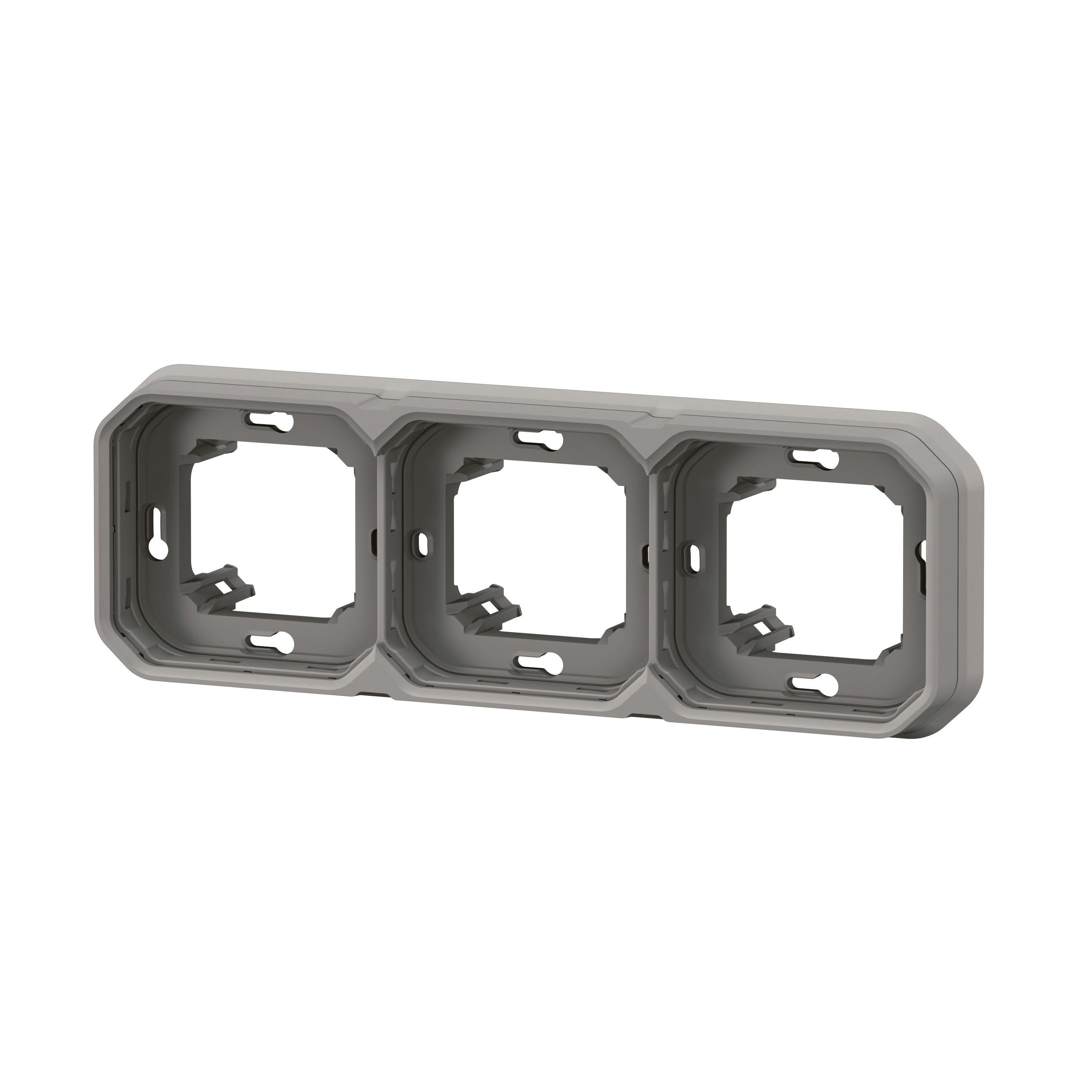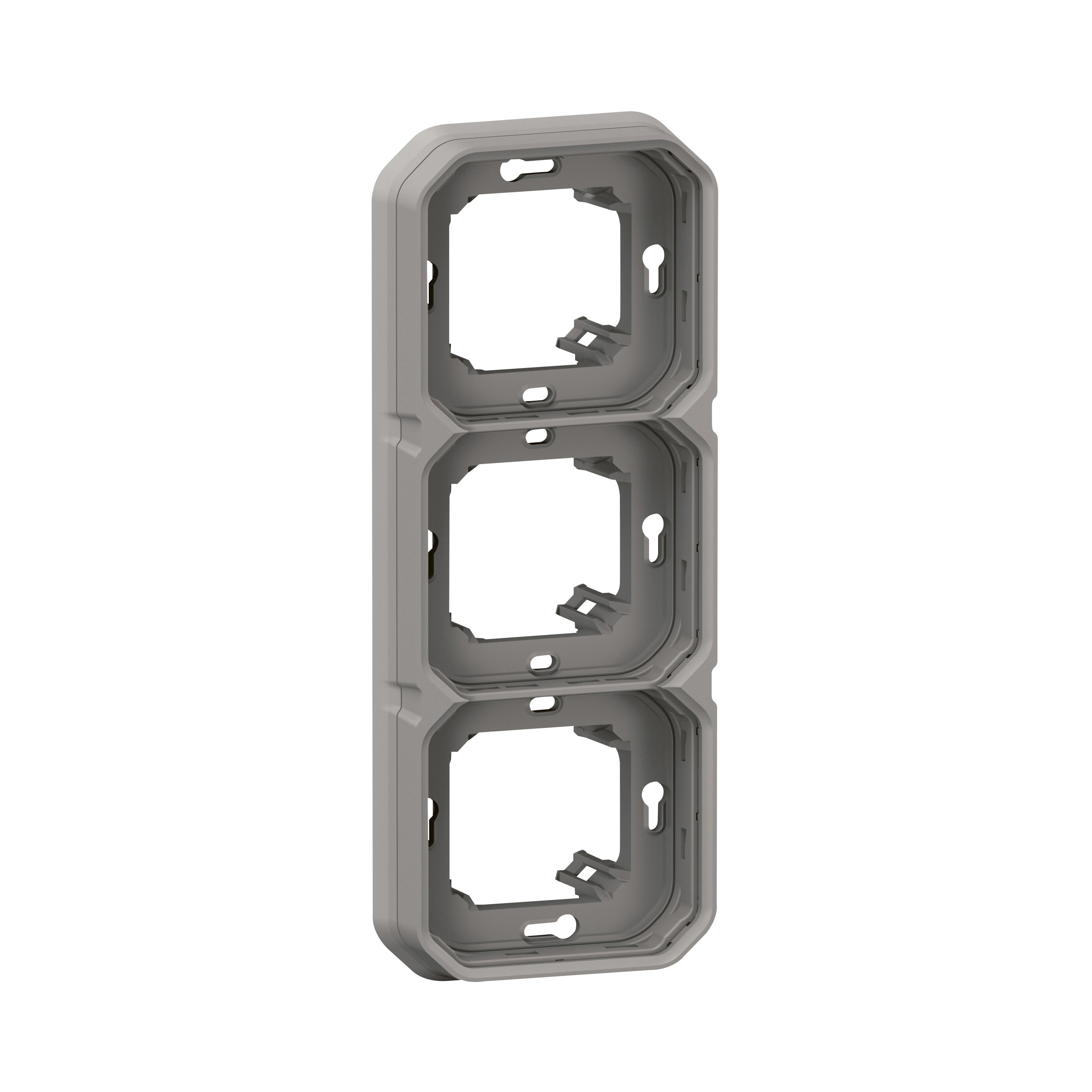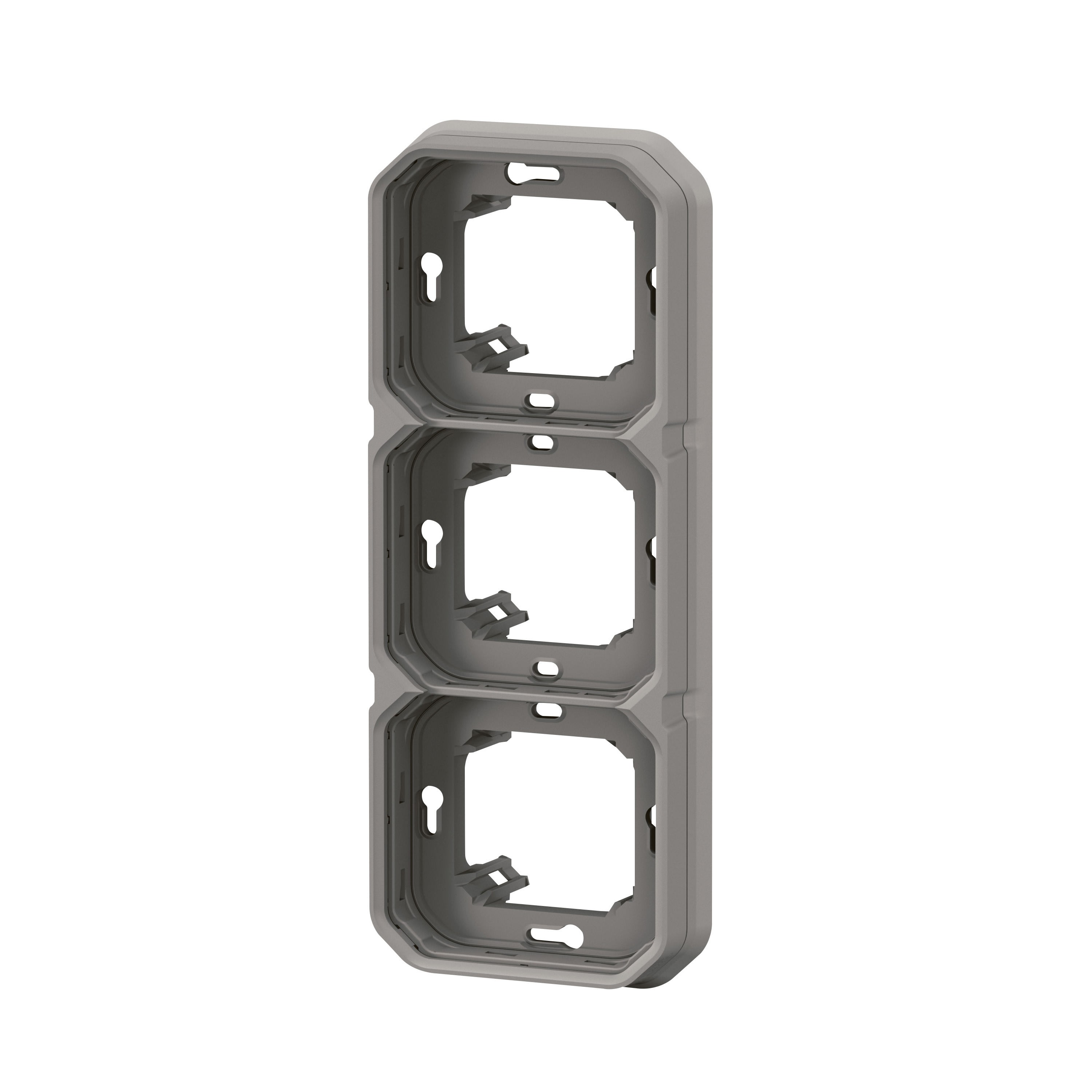 Support encastré sur lequel sont installés les produits livrés en mode composable IP55 : protégé contre les poussières et les projections d'eau à la lance de toutes directions 3 postes Gris