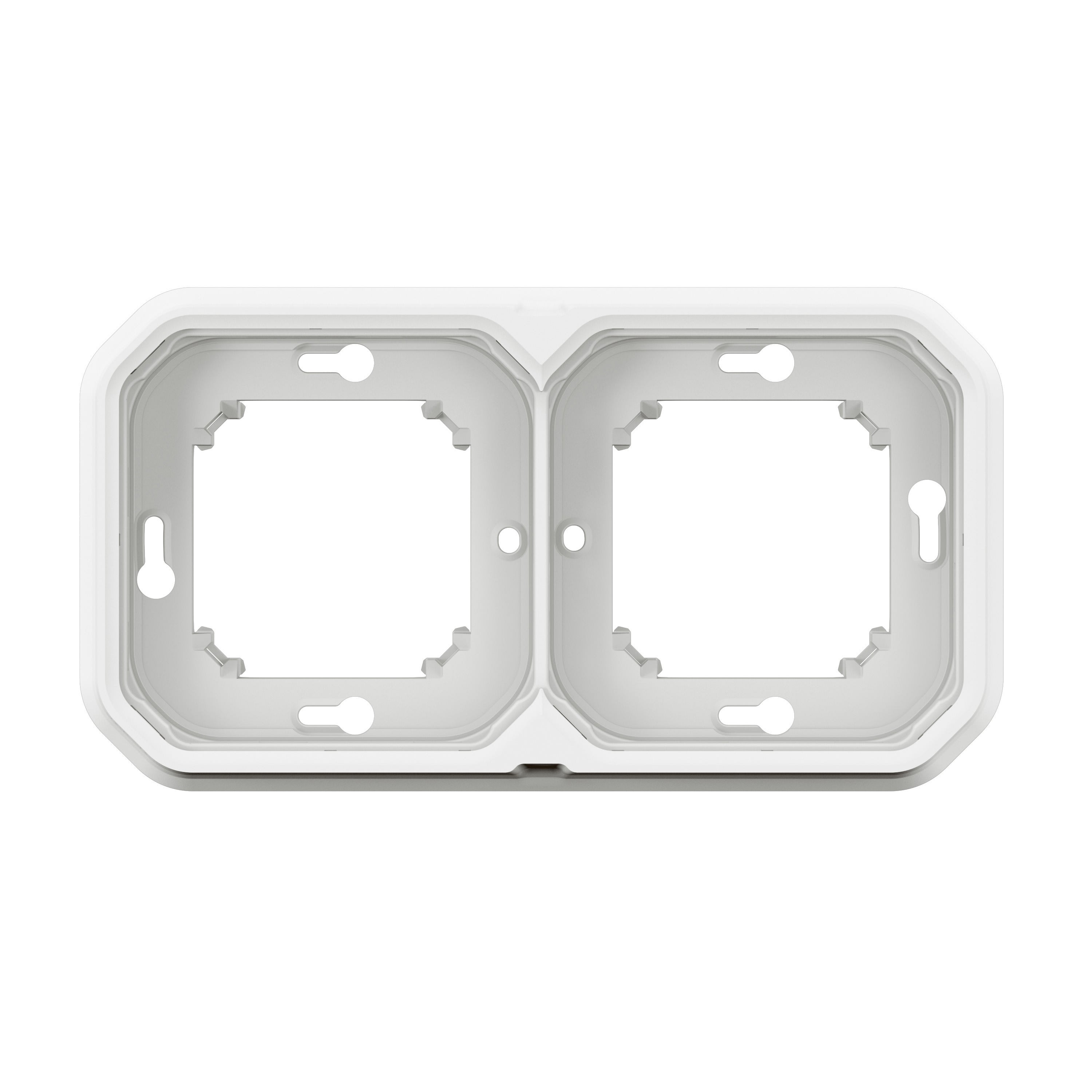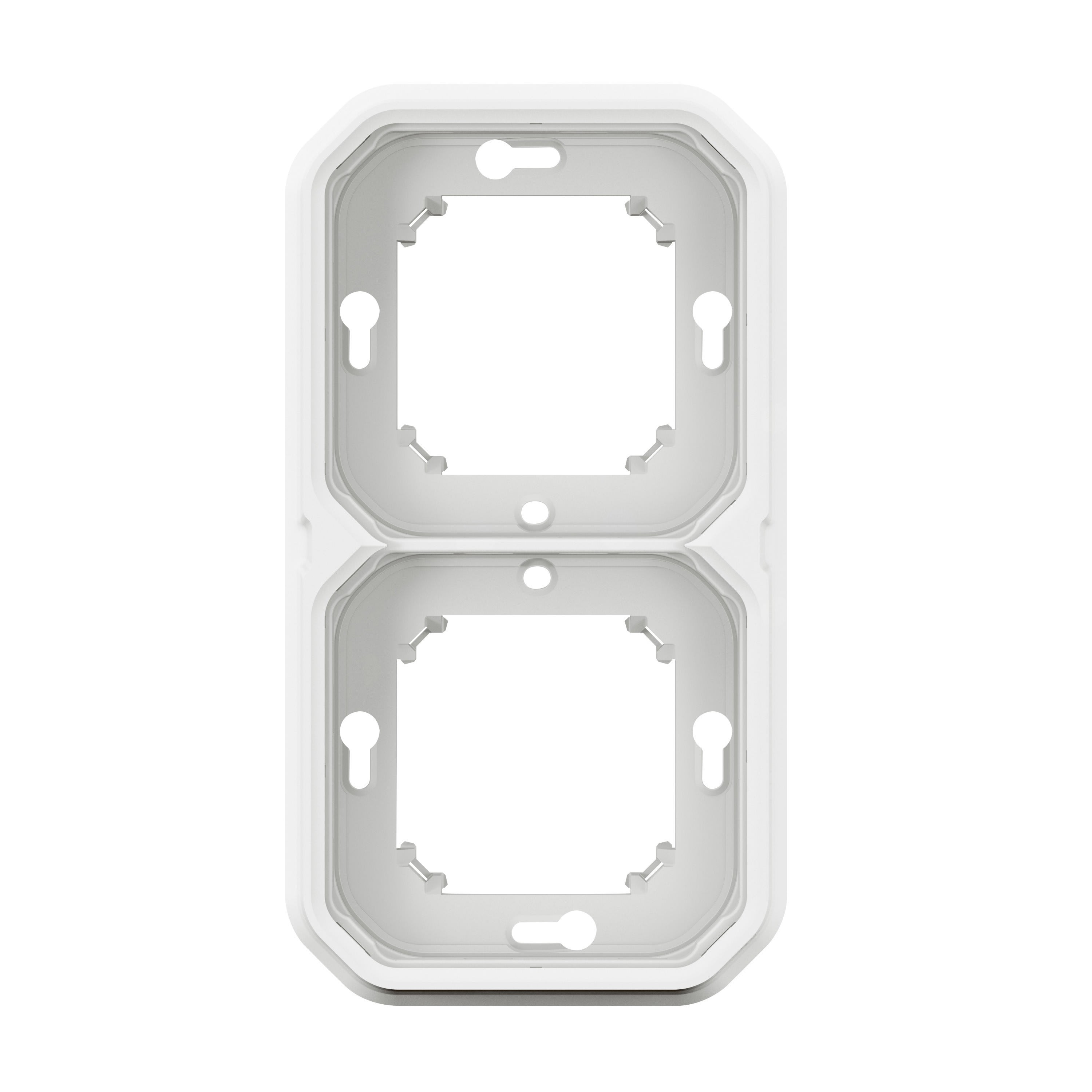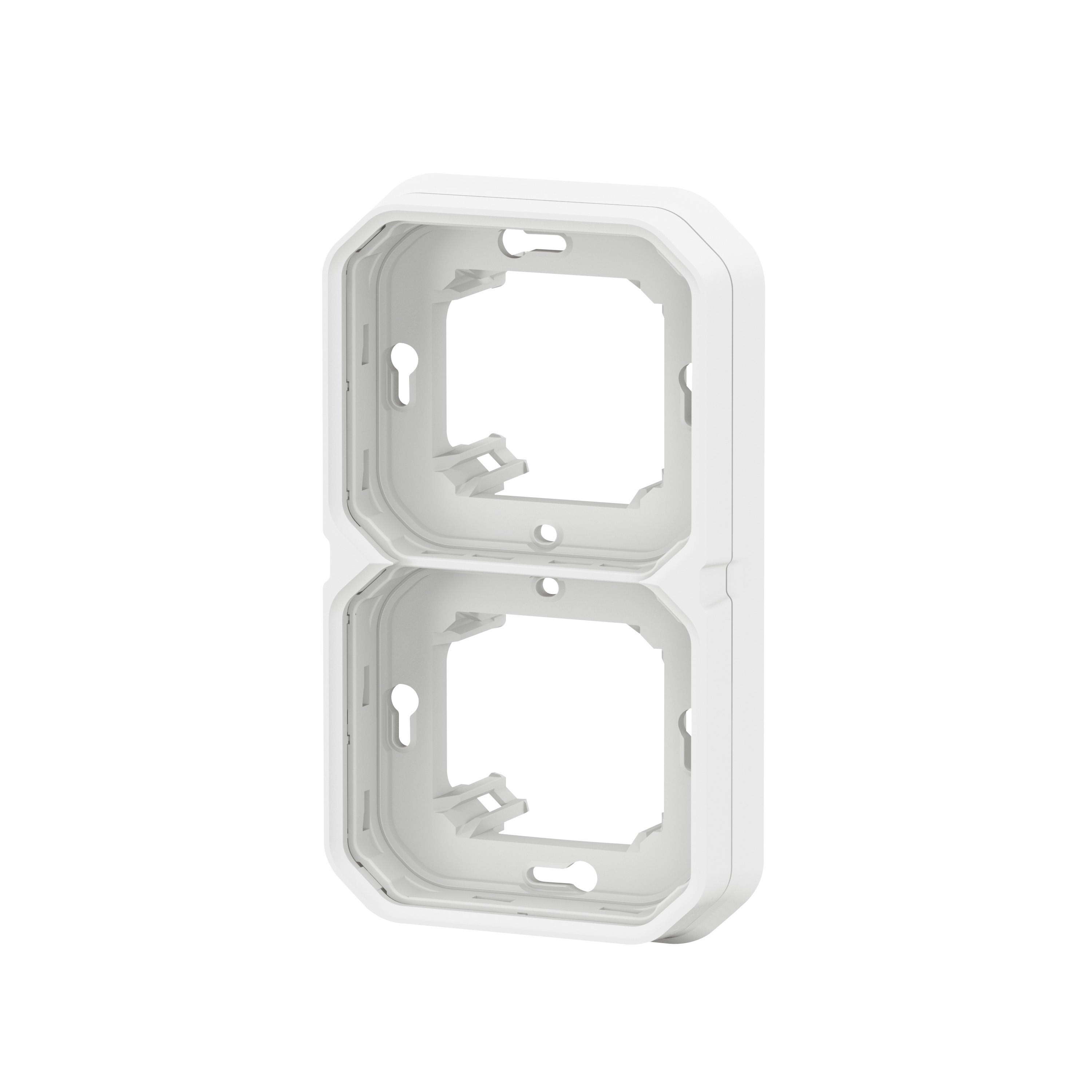 Support encastré sur lequel sont installés les produits livrés en mode composable IP55 : protégé contre les poussières et les projections d'eau à la lance de toutes directions 2 postes Blanc
