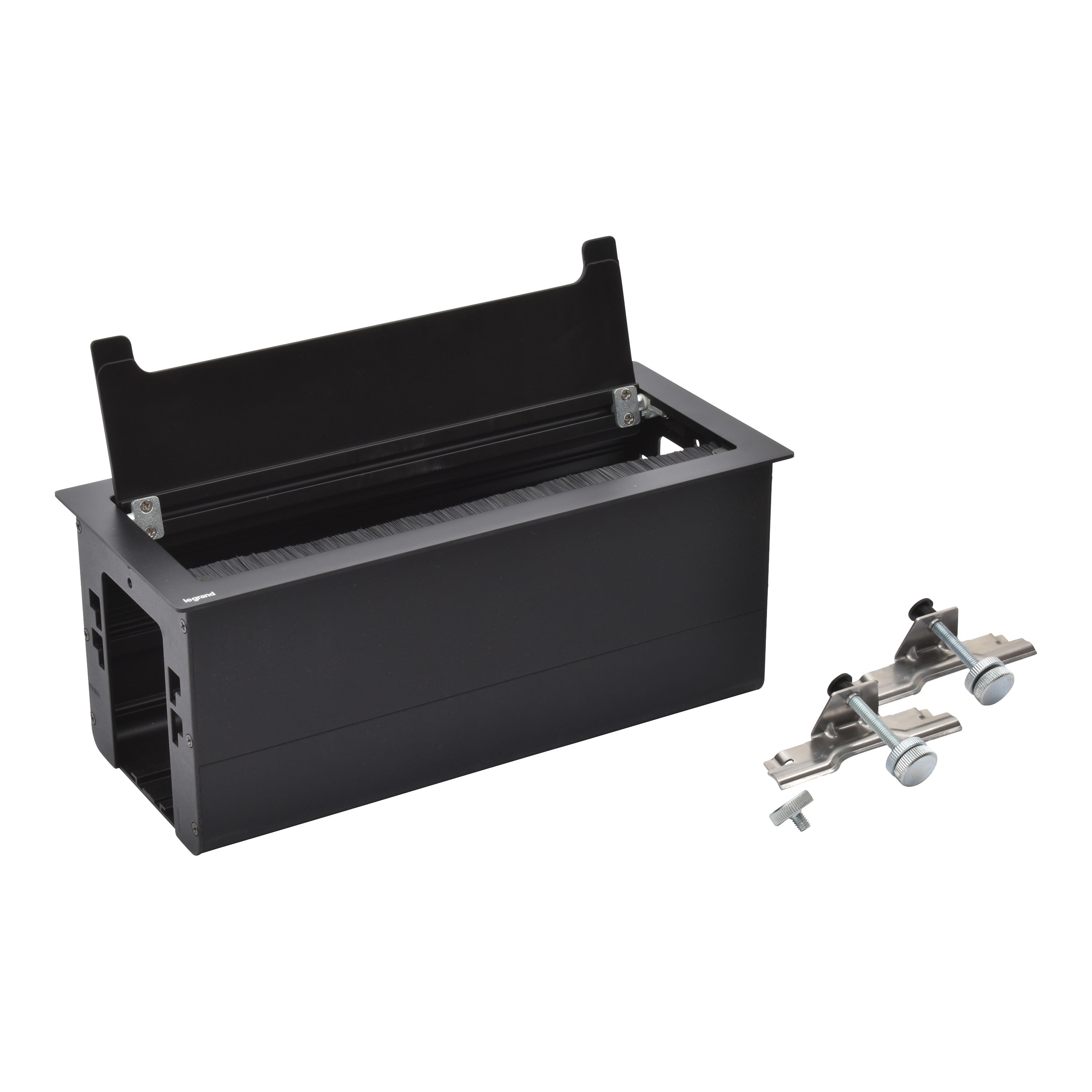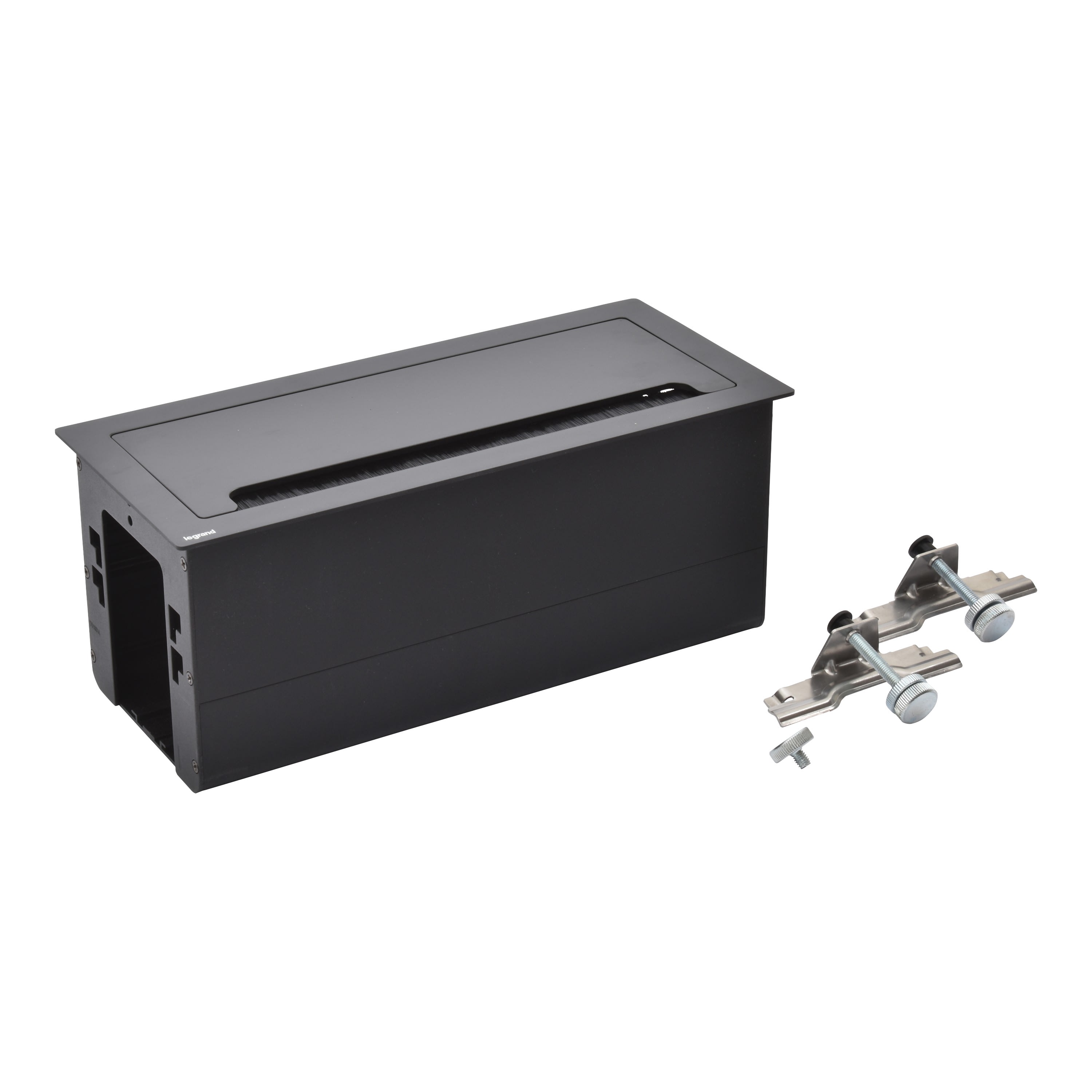 Boîtier Top Access Incara taille 295mm finition noir pour ranger une nourrice ou un bloc multiprise de manière simple dans l'espace de travail - à encastrer dans le mobilier