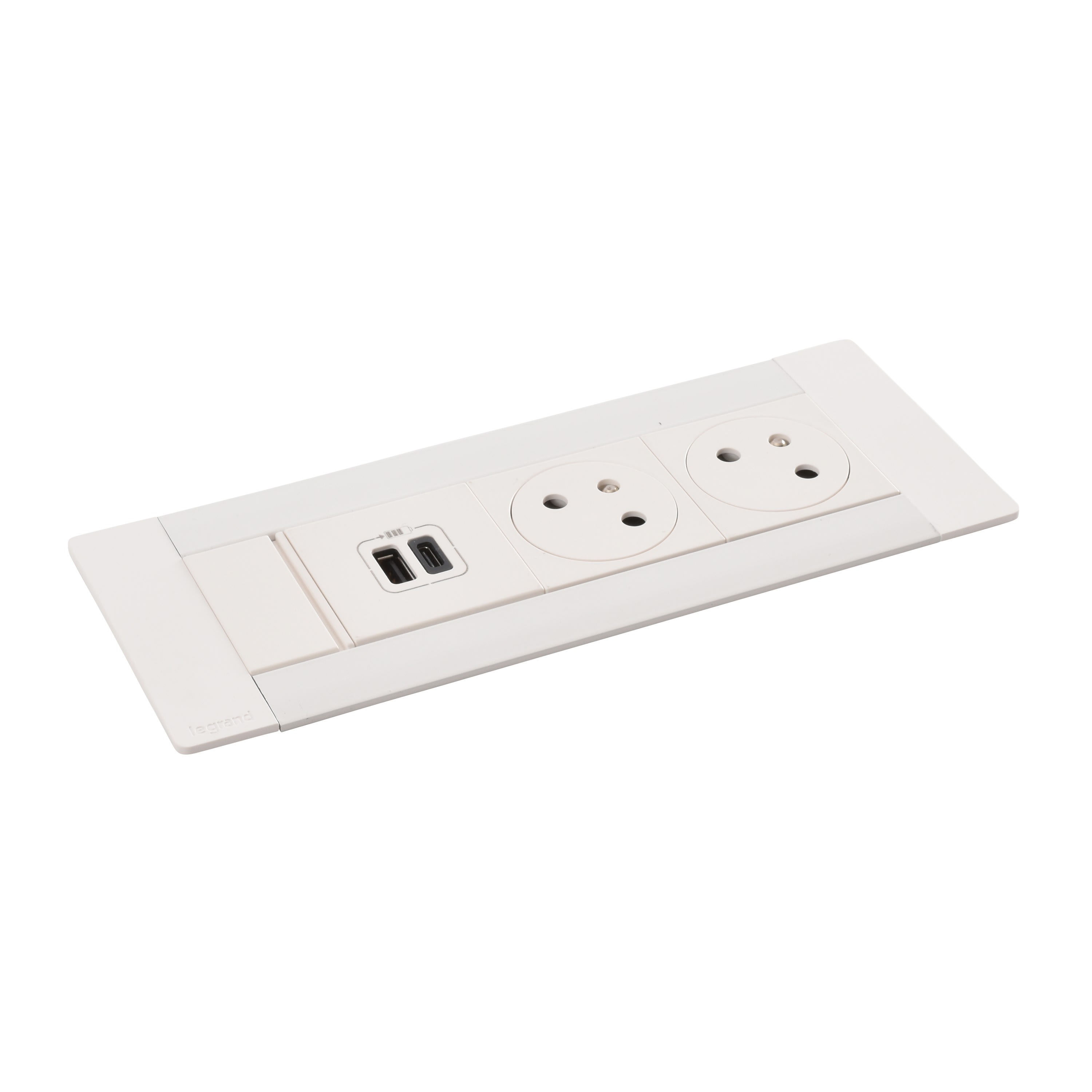 Multilink Incara 6 modules version horizontal pour encastrement dans mobilier équipé de 2 prises de courant Surface et 1 chargeur USB Type-A + Type-C - finition blanc avec profondeur d'encastrement 80mm minimum