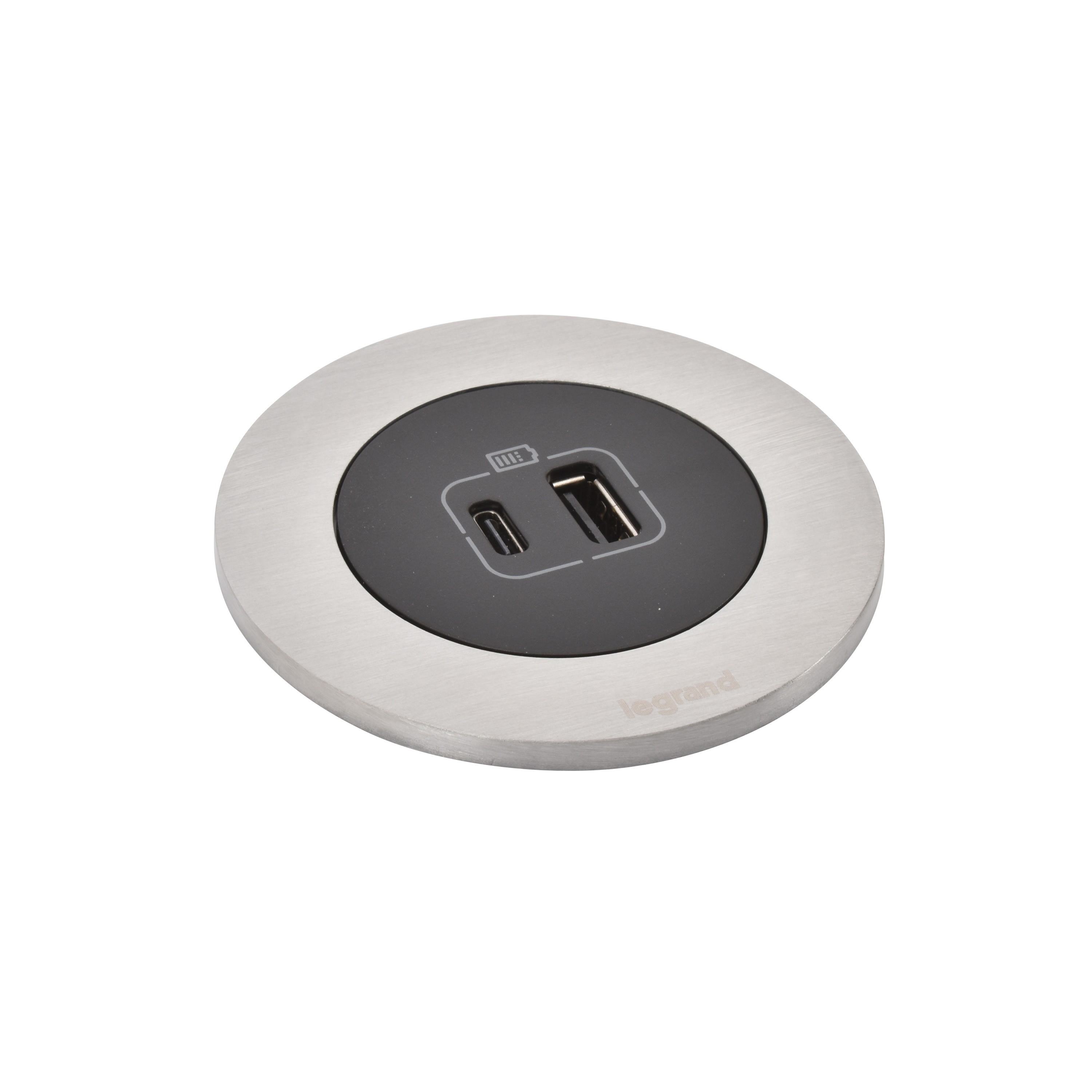 Disq 60 Incara avec chargeur USB TypeA+TypeC 15W livré avec cordon de longueur 0,5m équipé d'un connecteur Wieland - finition métal Ø60mm à fixer sur tout type de support, d' épaisseur 1 mm minimum à l’horizontale comme à la verticale