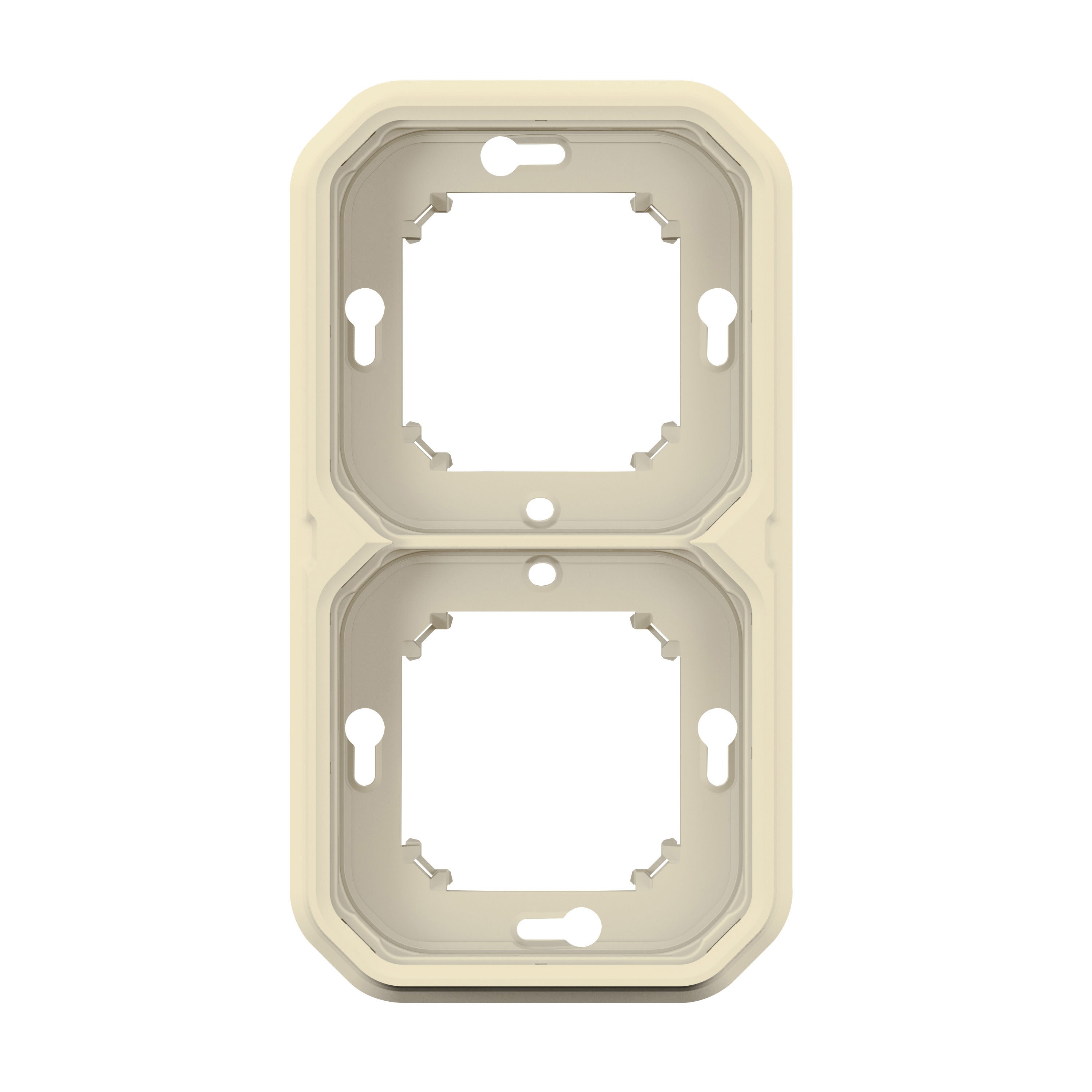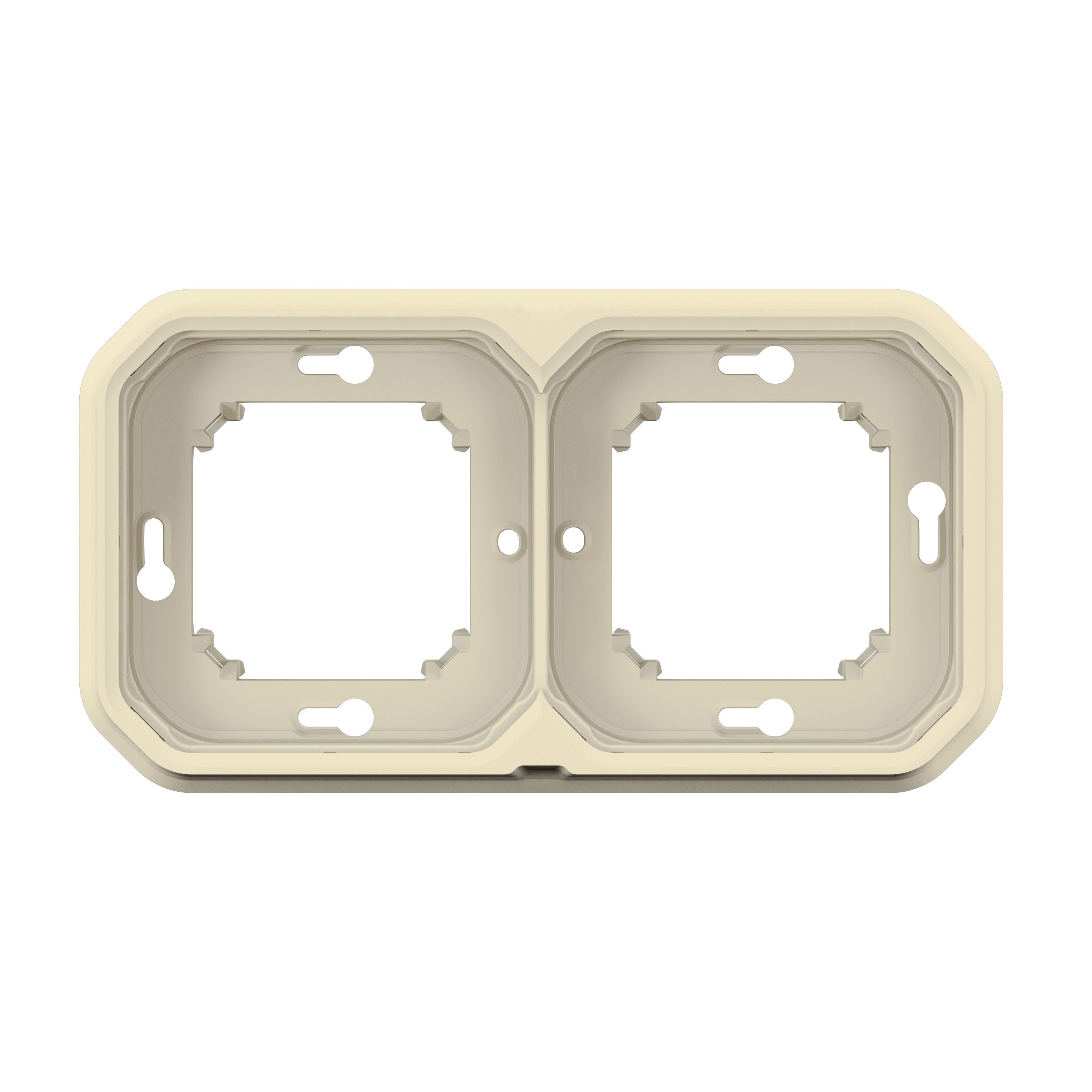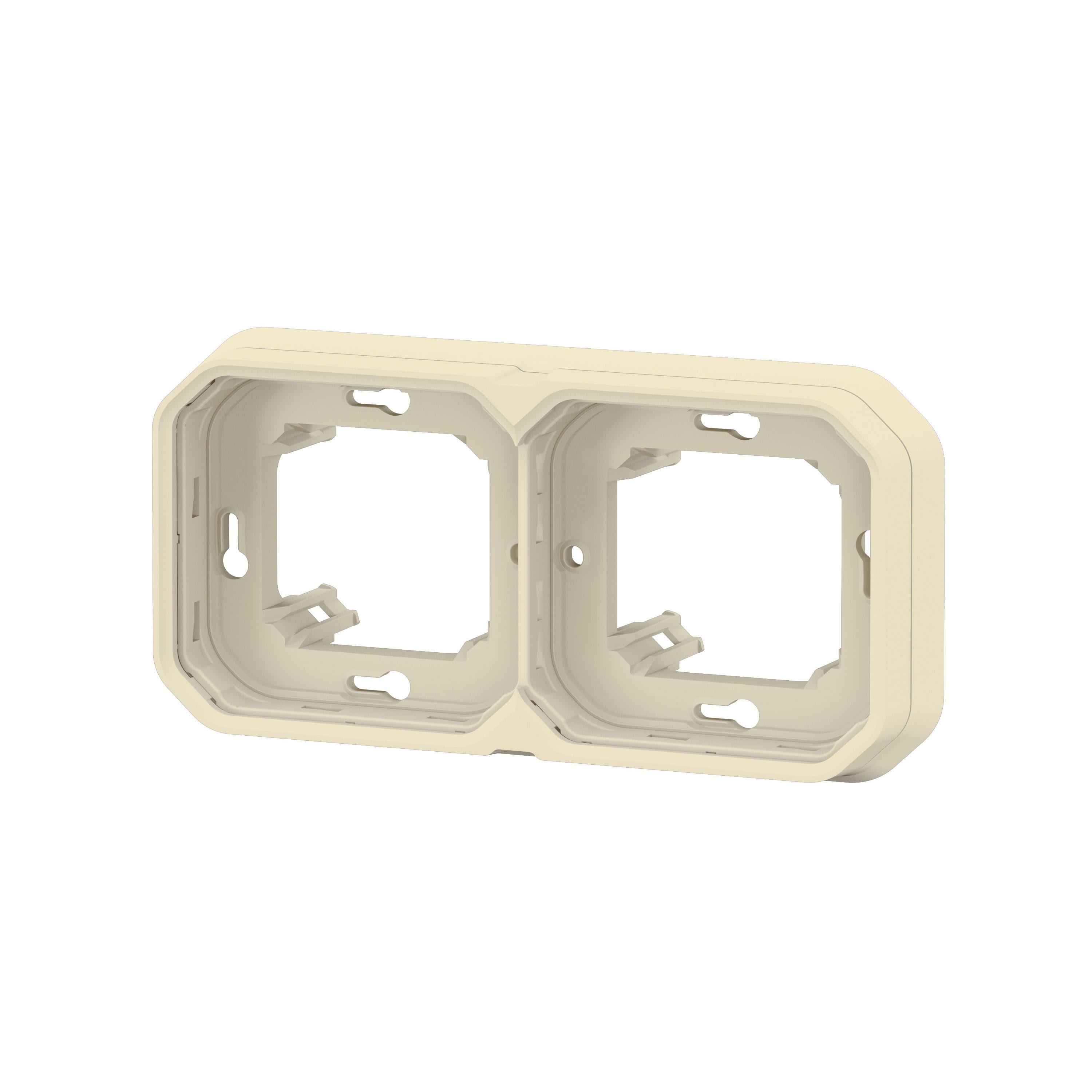 Support plaque étanche pour montage horizontal ou vertical en encastré avec boîte d'encastrement 2 postes de fonctions Plexo - sable