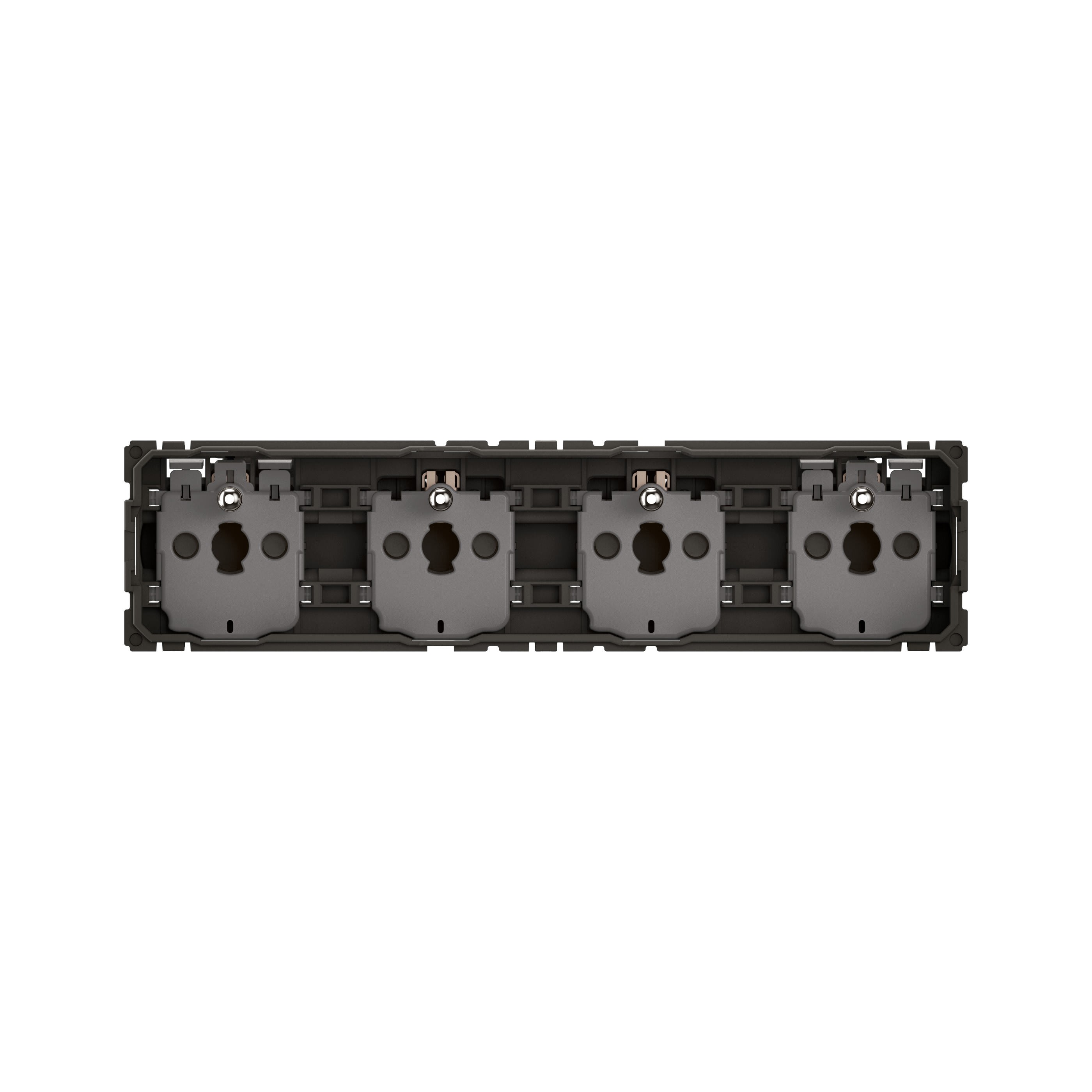 Prise quadruple compacte 4x2P+T 16A 250V Céliane précâblée à équiper d'un support référence 080253, d'un enjoliveur spécial quadruple prise compacte et d'une plaque de finition Céliane 6/8 modules - connexion à bornes automatiques