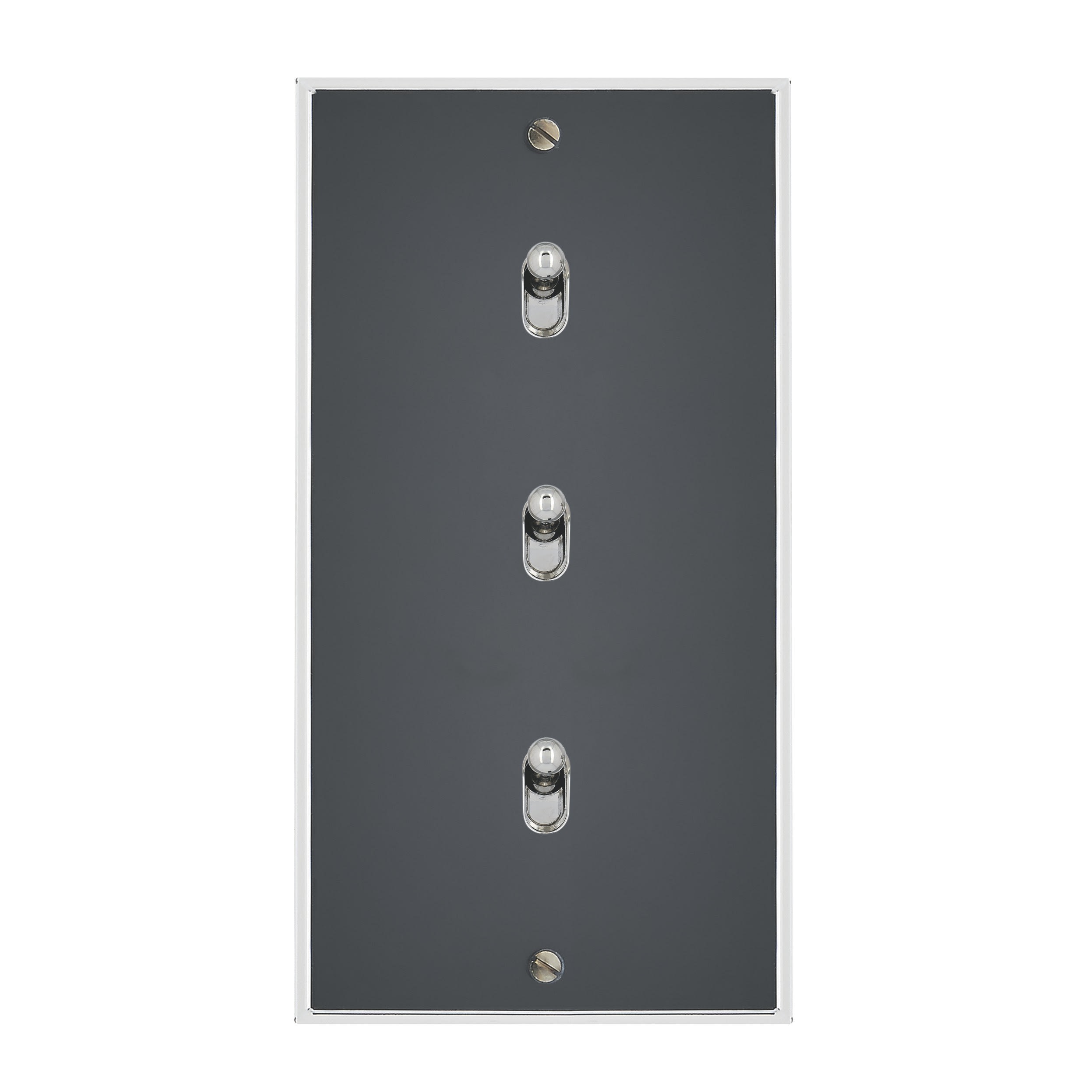 Trois va-et-vient 10A à levier goutte d'eau Art d'Arnould Univers Mémoire Cristal Sans collerette Dimensions grand carrée triple 80x222mmm Se monte dans boîte d'encastrement 3 postes