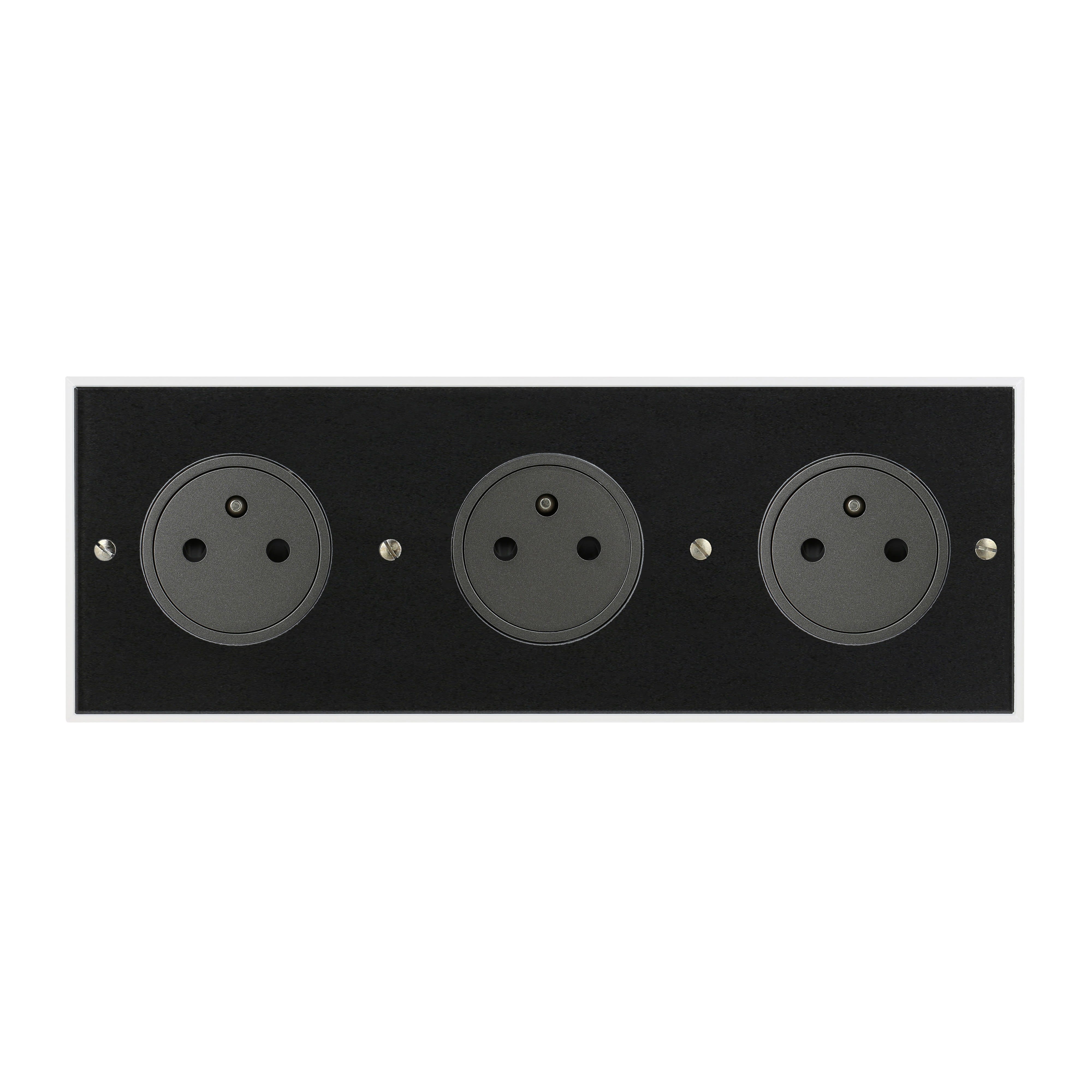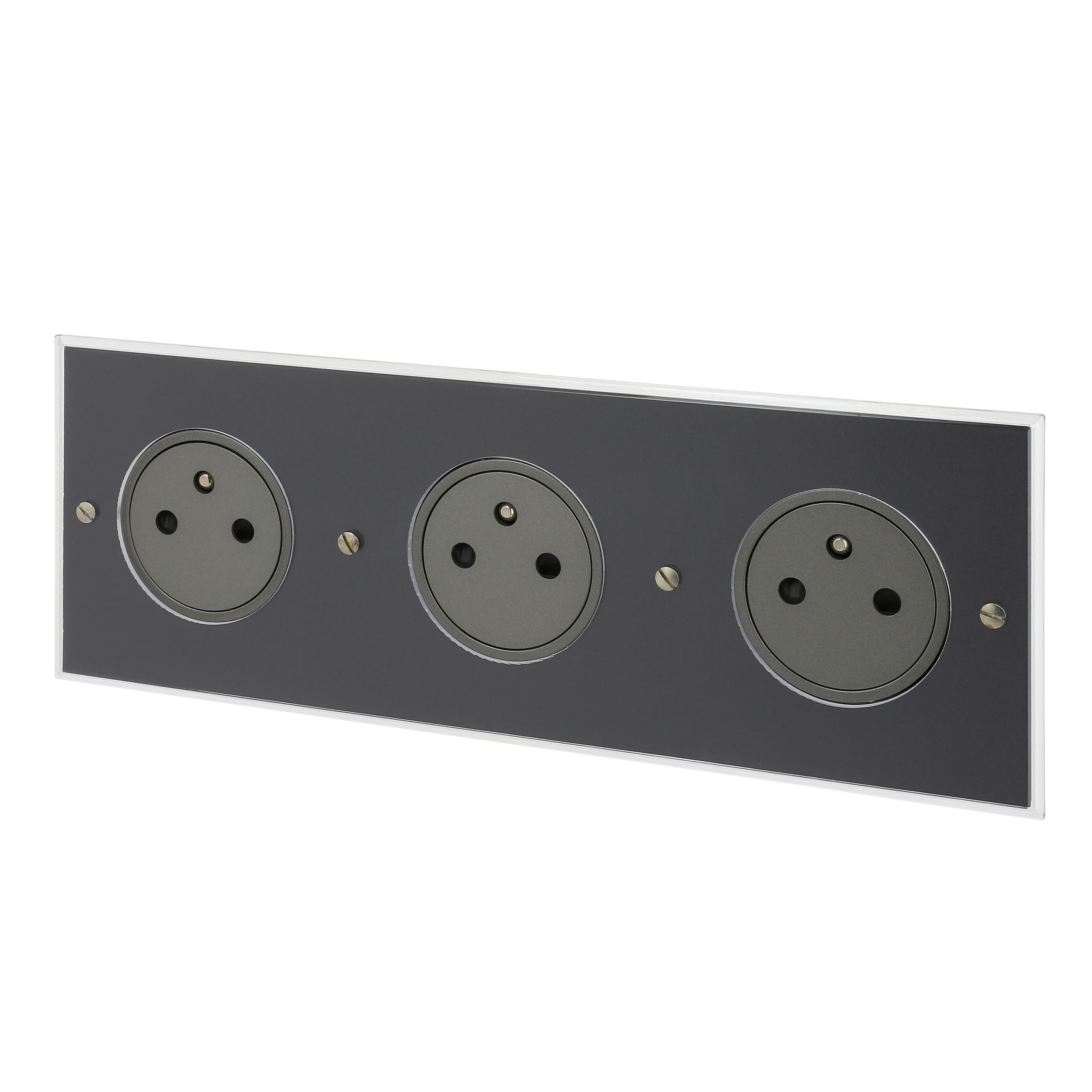 Triple prise de courant 2P+T Surface gris magnésium 16A 250V Art d'Arnould univers Mémoire finition Cristal monobloc format 1 poste - livré complet avec gabarit de découpe et vis chromés