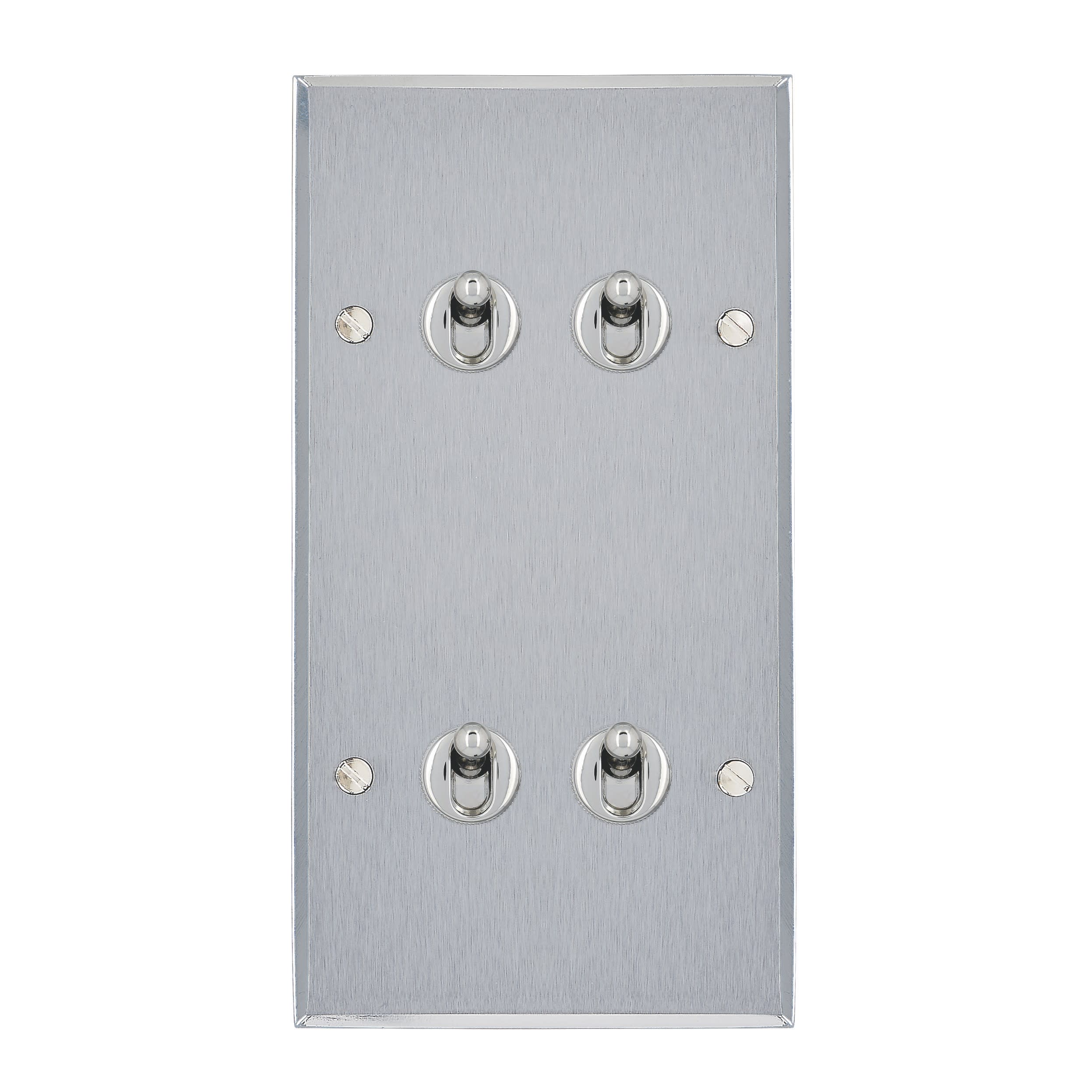 Quatre va-et-vient 10A à levier goutte d'eau Art d'Arnould Univers Mémoire Acier brossé Chromée avec collerette Dimensions grand carrée double 80x151mm Se monte dans boîte d'encastrement 2 postes