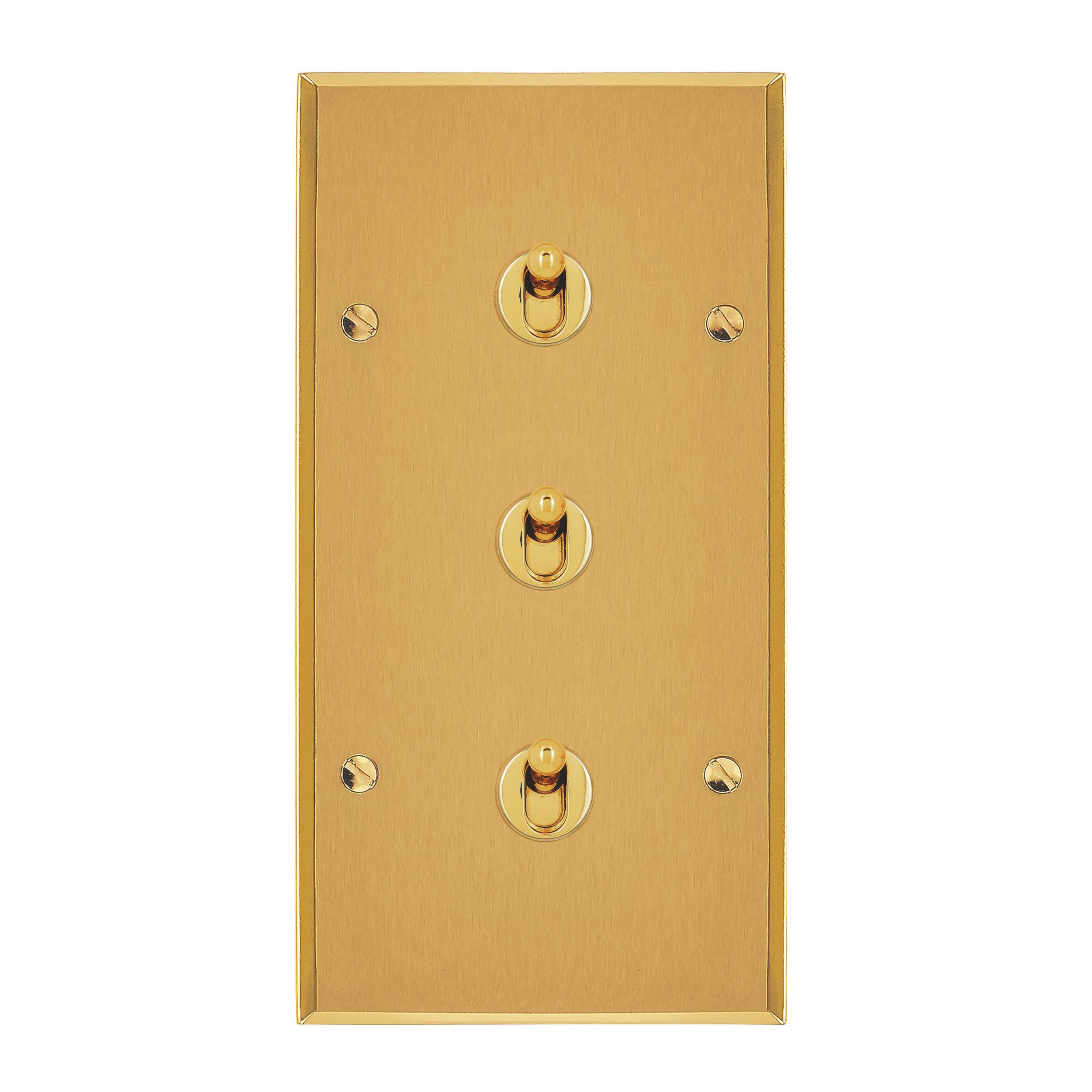 Trois va-et-vient 10A à levier goutte d'eau Art d'Arnould Univers Mémoire Or brossé Chromée avec collerette Dimensions grand carrée triple 80x222mmm Se monte dans boîte d'encastrement 3 postes