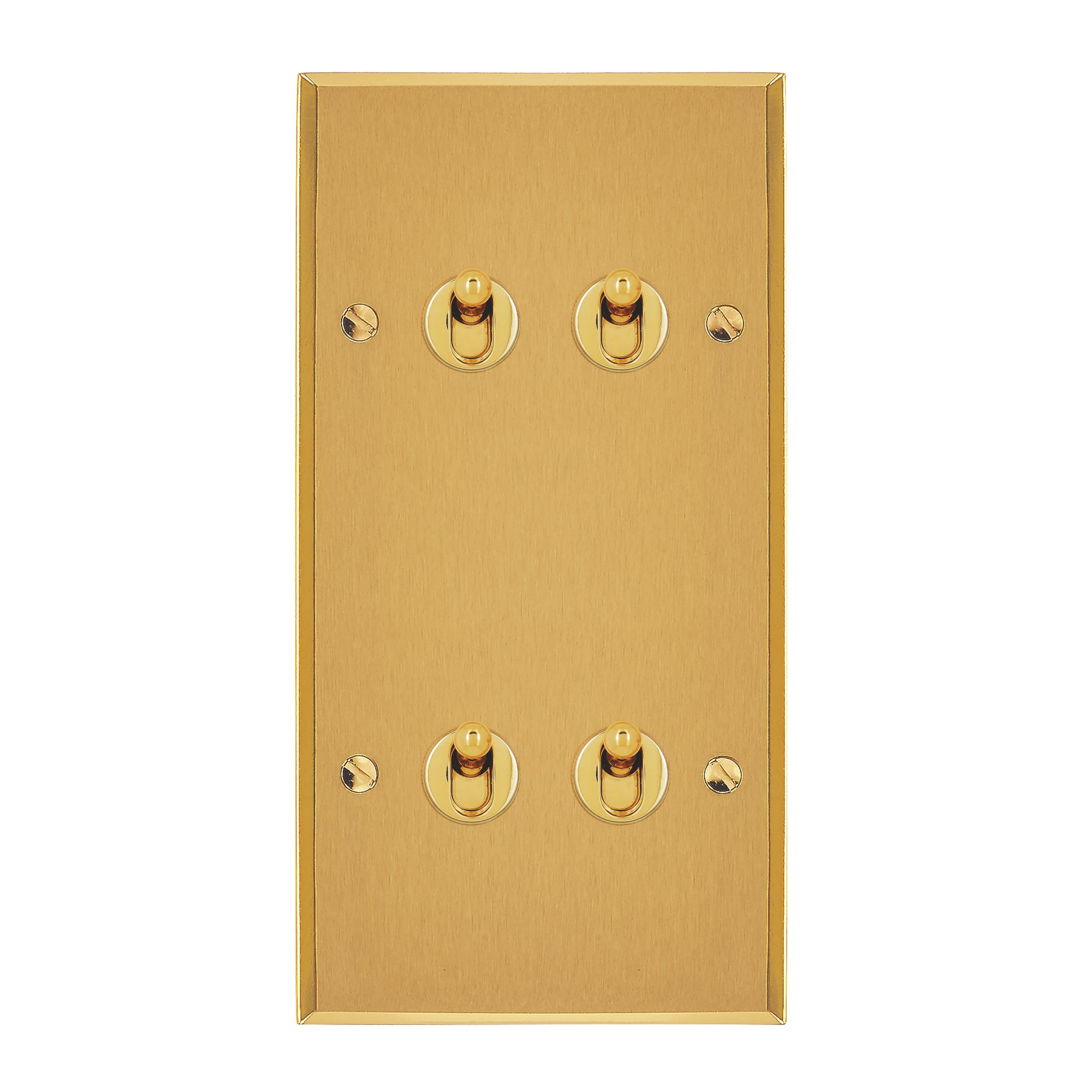 Quatre va-et-vient 10A à levier goutte d'eau Art d'Arnould Univers Mémoire Or brossé Chromée avec collerette Dimensions grand carrée double 80x151mm Se monte dans boîte d'encastrement 2 postes