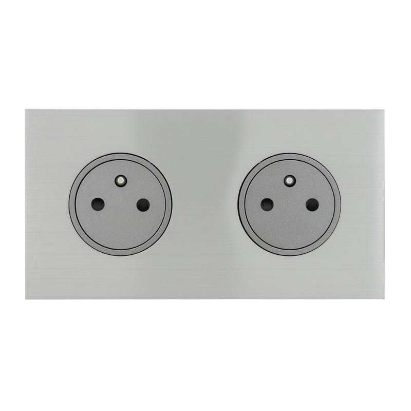 Double prise 2P+T Surface gris magnésium 16A - 250V Art d'Arnould Univers Epure Acier brossé Dimensions grand carrée double 80x151mm Se monte dans boîte d'encastrement 2 postes