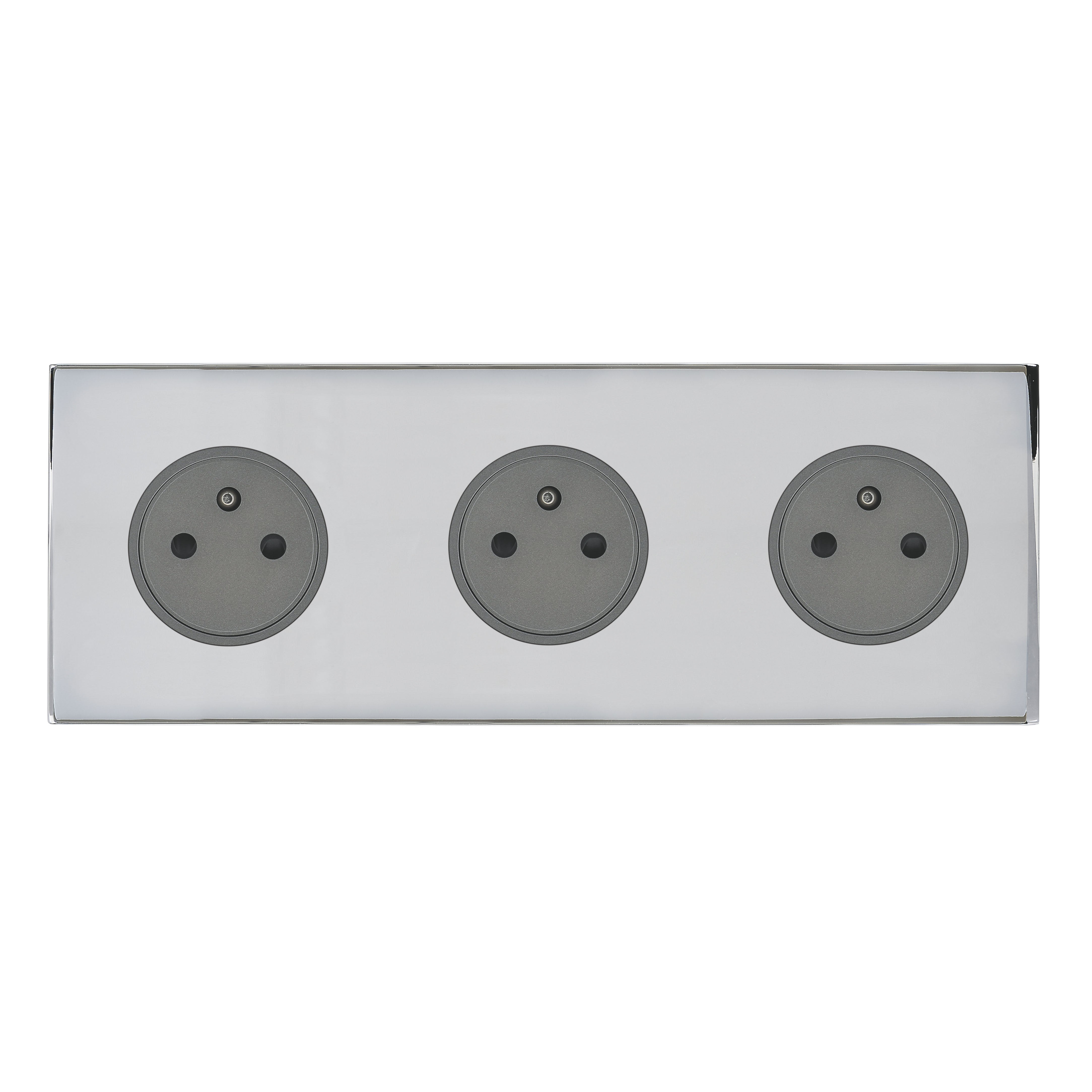 Triple prise 2P+T Surface gris magnésium 16A - 250V Art d'Arnould Univers Epure Acier miroir Dimensions grand carrée triple 80x222mm Se monte dans boîte d'encastrement 3 postes