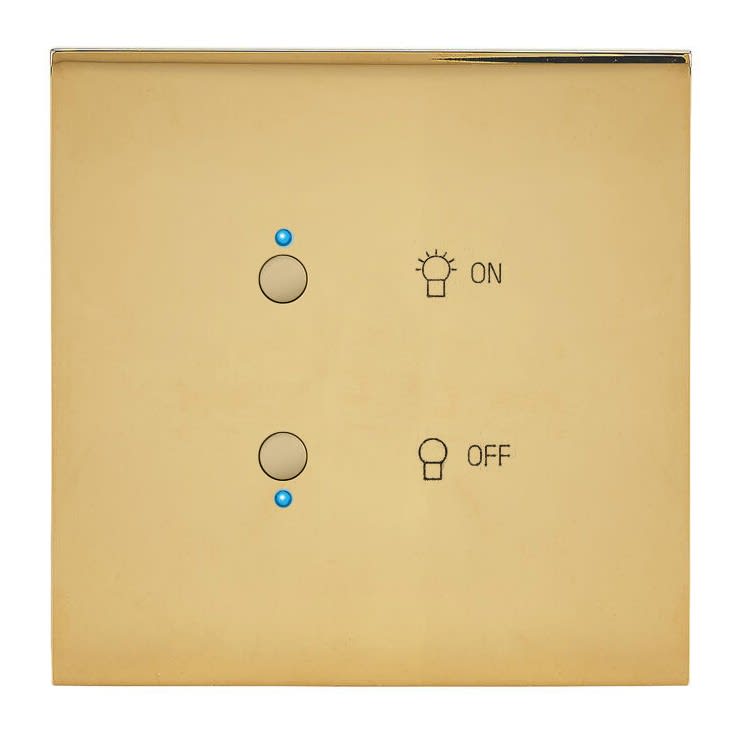 Interrupteur de lumière MyHOME_Up Art d'Arnould avec 2 poussoirs et 2 LEDs de statut Univers Epure Or miroir Boutons dorés Dimensions grand carrée 80x80mm