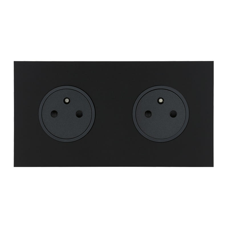 Double prise 2P+T Surface anthracite 16A - 250V Art d'Arnould Univers Epure Noir mat Dimensions grand carrée double 80x151mm Se monte dans boîte d'encastrement 2 postes