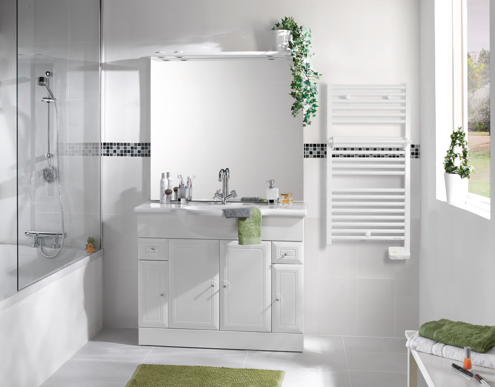 Radiateur sèche-serviettes - électrique 2012 digital étroit 0300W blanc équipé d'un boîtier de commande digital et d'une barre de portage additionnelle de série