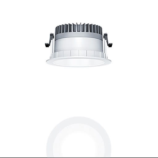 Plafonnier encastré à LED R150 (luminaire complet), avec Distribution lumineuse symétrique et extensive de la lumière (70 °), une efficacité maximale du luminaire, une technique d'éclairage downlight optimale ; une grande durabilité en raison d'une structure modulaire maximale continue et de composants échangeables. Module LED interchangeable, Distribution lumineuse symétrique et extensive de la lumière, Rendu des couleurs Ra > 90 (R9 > 50), température de couleur 3000 K ; Tolérance de la couleur (MacAdam intial): 2 ; Puissance du luminaire: 21,2 W ; Flux lumineux du luminaire: 2710 lm ; ; Efficacité lumineuse du luminaire: 128 lm/W ; Durée de vie utile médiane: L80 100000 h à 25 °C + L90 50000 h à 25 °C, avec convertisseur LED enfichable séparé, Luminaire pilotable via DALI (via DALI uniquement) ; avec fonction DC, réglable de 1 à 100 %, configurable NFC, compatible SwitchDIM ; unité réflecteur haut de gamme se fixant sur la chambre lumineuse modulaire à LED grâce à la fermeture à baïonnette ; chambre lumineuse à LED extrêmement efficace intégrée dans la gestion thermique passive optimisée en Gestion thermique passive en aluminium recyclé injecté sous pression, réflecteur/collerette en Polycarbonate (PC) de grande qualité et résistant aux UV ; réflecteur : laqué blanc ; ; collerette : blanc ; collerette d’encastrement en Polycarbonate (PC) ; blanc ; degré de protection : IP54_IP20 ; ; câblage du luminaire sans halogène ; raccordement : Bornier à 5 pôles à enfichage ; Câblage en dérivation possible ; ; tension secteur : 220-240 V / 0/50/60 Hz, compatible avec une batterie centralisée à courant continu de 220-240 V DC ; ; Montage rapide sans outil à l'aide de clips de fixation anti-dérapants pour épaisseurs de plafond de 1 à 40 mm (selon les modèles de luminaires) grâce à des barrettes de maintien interchangeables ; montage rapide sans outil de l'unité d'éclairage à l’aide d'une fermeture à baïonnette, découpe de plafond : 150 mm , profondeur d'encastrement : 100 mm; poids : 0,74 kg ; ;Pour des applications dans les bureaux conformément à la norme EN12464 avec UGR 19 (réflecteur alumisé)