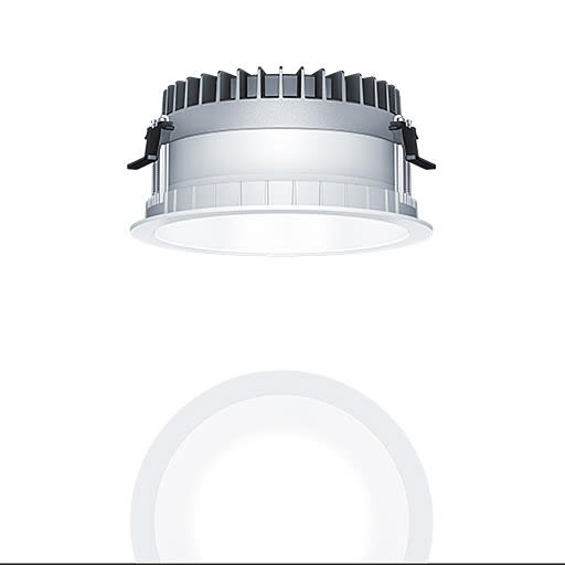 Plafonnier encastré à LED R200 (luminaire complet), avec Distribution lumineuse symétrique et extensive de la lumière (81 °), une efficacité maximale du luminaire, une technique d'éclairage downlight optimale ; une grande durabilité en raison d'une structure modulaire maximale continue et de composants échangeables. Module LED interchangeable, Distribution lumineuse symétrique et extensive de la lumière, Rendu des couleurs Ra > 80, température de couleur 3000 K ; Tolérance de la couleur (MacAdam intial): 2 ; Puissance du luminaire: 17,3 W ; Flux lumineux du luminaire: 2520 lm ; ; Efficacité lumineuse du luminaire: 146 lm/W ; Durée de vie utile médiane: L80 100000 h à 25 °C + L90 50000 h à 25 °C, avec convertisseur LED enfichable séparé, Luminaire pilotable via DALI (via DALI uniquement) ; avec fonction DC, réglable de 1 à 100 %, configurable NFC, compatible SwitchDIM ; unité réflecteur haut de gamme se fixant sur la chambre lumineuse modulaire à LED grâce à la fermeture à baïonnette ; chambre lumineuse à LED extrêmement efficace intégrée dans la gestion thermique passive optimisée en Gestion thermique passive en aluminium recyclé injecté sous pression, réflecteur/collerette en Polycarbonate (PC) de grande qualité et résistant aux UV ; réflecteur : laqué blanc ; ; collerette : blanc ; collerette d’encastrement en Polycarbonate (PC) ; blanc ; degré de protection : IP54_IP20 ; ; câblage du luminaire sans halogène ; raccordement : Bornier à 5 pôles à enfichage ; Câblage en dérivation possible ; ; tension secteur : 220-240 V / 0/50/60 Hz, compatible avec une batterie centralisée à courant continu de 220-240 V DC ; ; Montage rapide sans outil à l'aide de clips de fixation anti-dérapants pour épaisseurs de plafond de 1 à 40 mm (selon les modèles de luminaires) grâce à des barrettes de maintien interchangeables ; montage rapide sans outil de l'unité d'éclairage à l’aide d'une fermeture à baïonnette, découpe de plafond : 200 mm , profondeur d'encastrement : 120 mm; poids : 1,09 kg ; ;Pour des applications dans les bureaux conformément à la norme EN12464 avec UGR 19 (réflecteur alumisé)