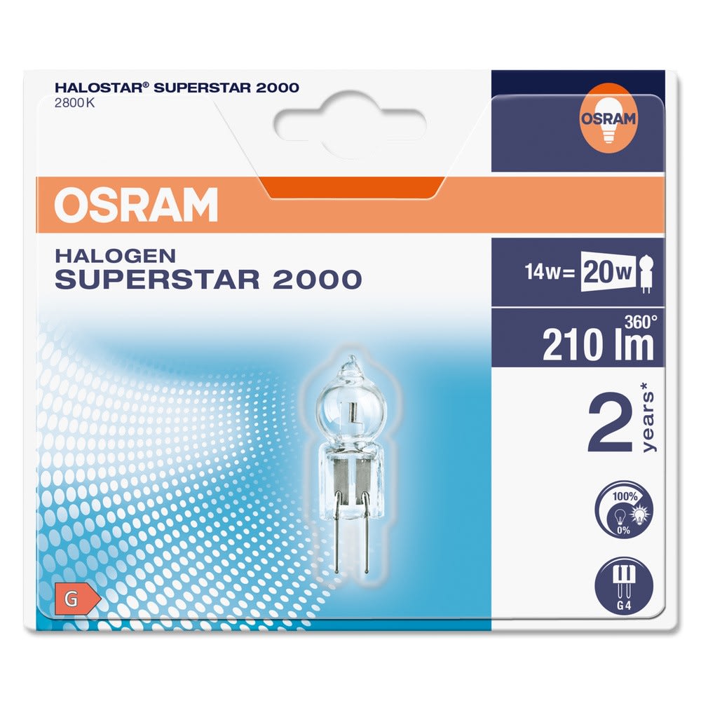 OSRAM - Lampe Halogène TBT 12V HALOSTAR IRC/XE - G4 - 14,00W - 230lm - 2900K - 2000h