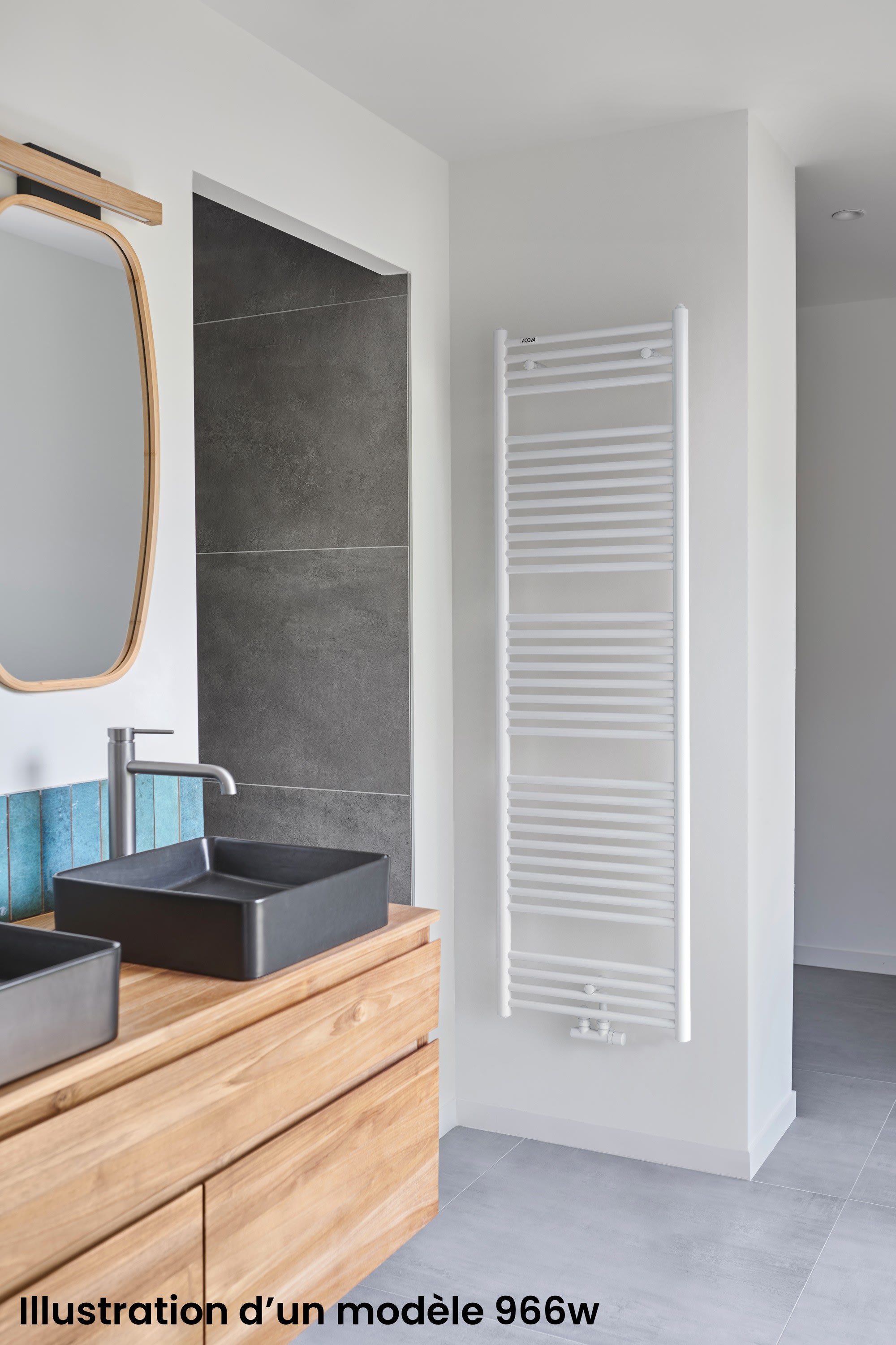 Radiateur sèche-serviettes ACOVA Atoll Spa Eau Chaude, puissance 839W (dT50), hauteur 1466 mm, largeur 600 mm, raccordement centré 4 orifices par le bas, entraxe 50 mm centré ou excentré, Aller/Retour réversible, Blanc RAL 9016
