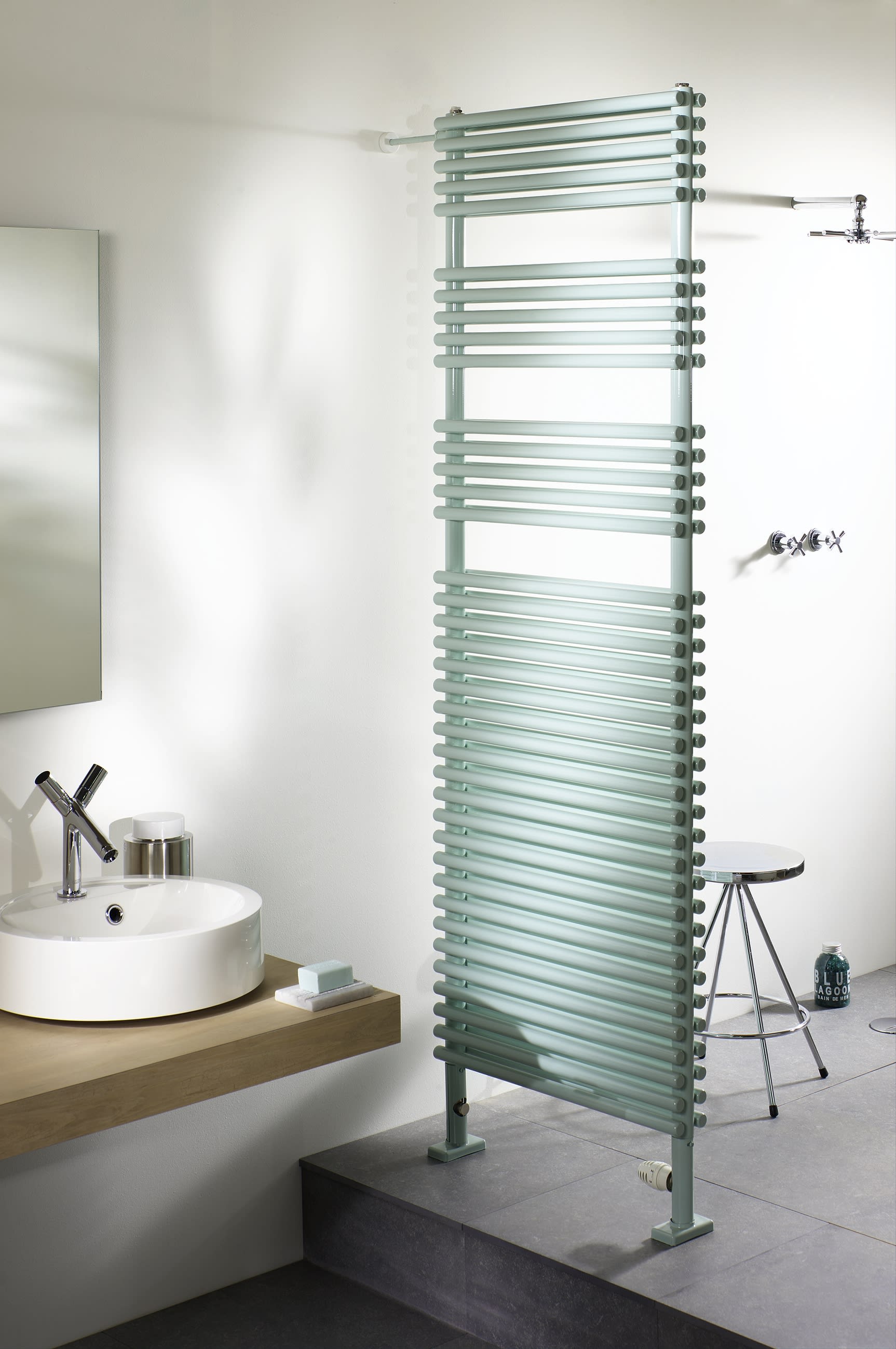 Radiateur sèche-serviettes en acier à tubes ronds, posés sur les collecteurs. Il est adapté à de nombreuses configurations (par exemple, modèles faible largeur ou pose en claustra). Se décline en blanc, en finition chromée, dans les 46 couleurs du nuancier Acova. Disponible en version électrique (avec ou sans soufflant), chauffage central (avec ou sans soufflant) ou mixte.