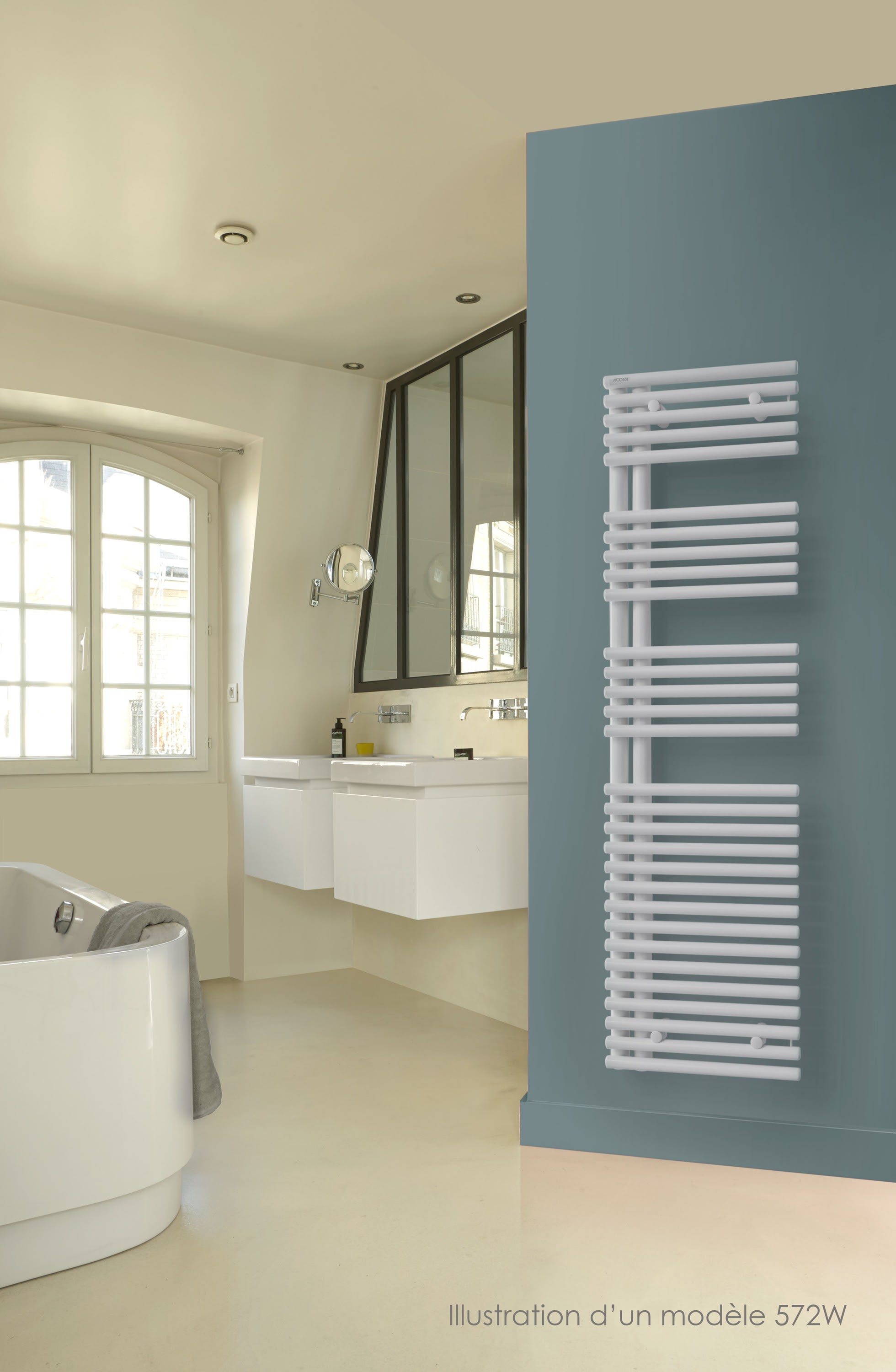 Radiateur sèche-serviettes en acier à tubes ronds. Son design asymétrique (à gauche ou à droite) est à la fois original et pratique pour poser les serviettes. Se décline en blanc, dans les 46 couleurs du nuancier Acova. Disponible en version électrique ou chauffage central.