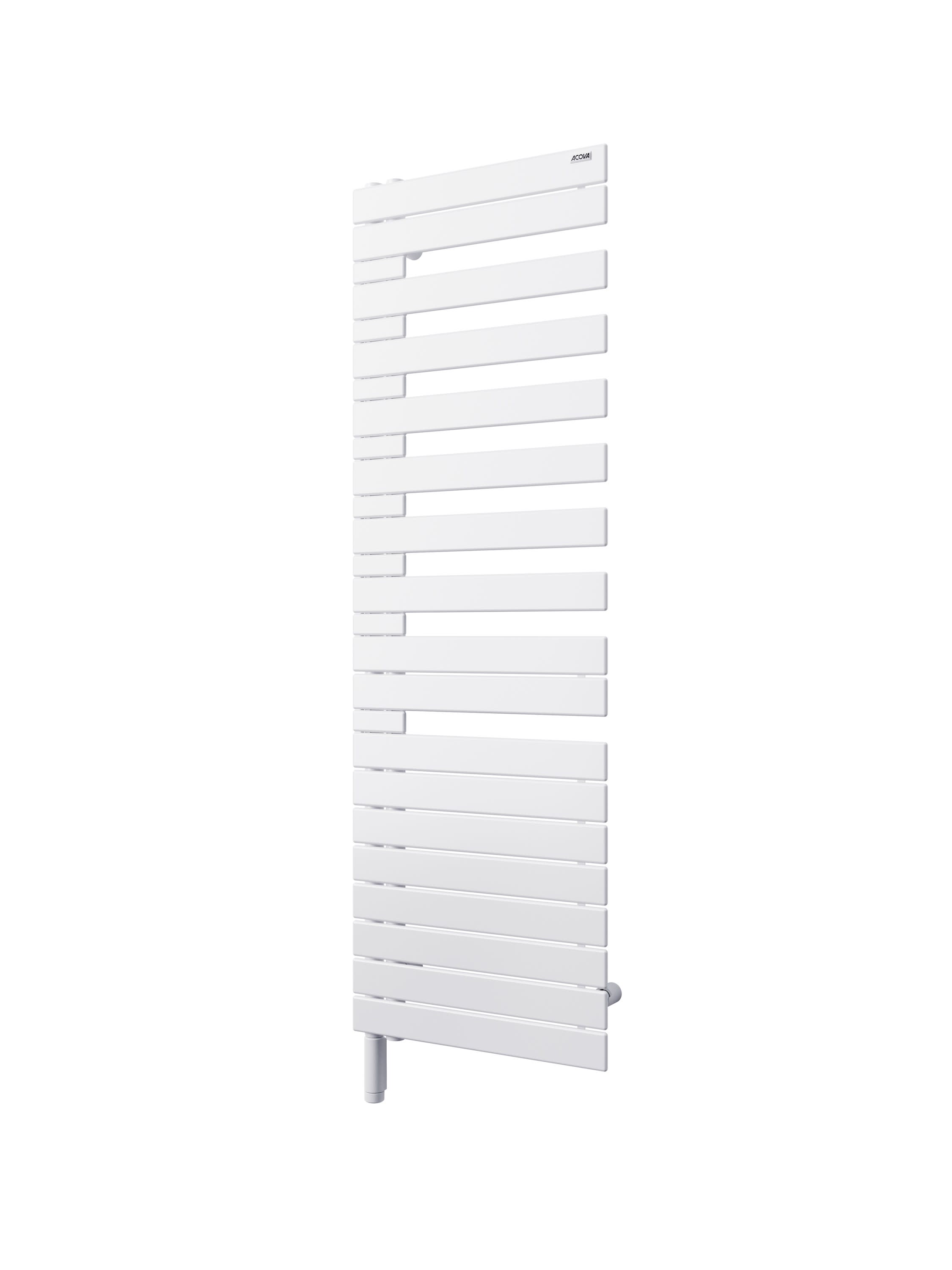 Radiateur sèche-serviettes en acier à tubes plats. Son design asymétrique (à gauche ou à droite) est à la fois original et pratique pour poser les serviettes. Se décline en blanc, dans les 46 couleurs du nuancier Acova. Disponible en version électrique ou chauffage central.