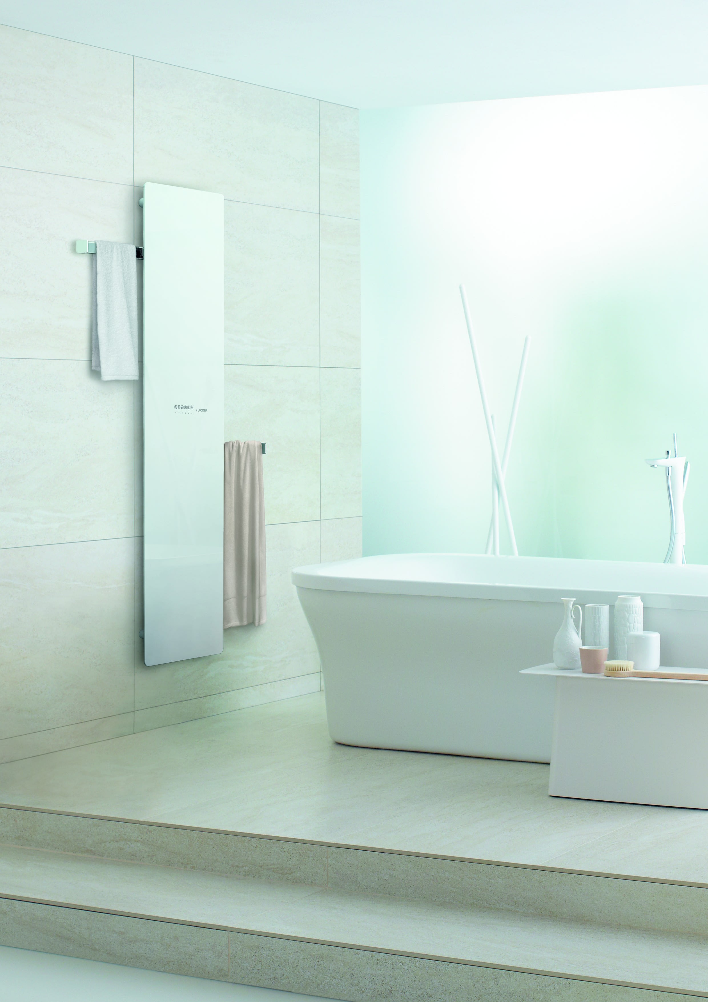 Un radiateur sèche-serviettes qui se fait discretSurface en verre pour un style très épuréEquipé d'une ou deux barres porte-serviettes rétractablesDisponible en noir brillant, blanc brillant ou miroirPilotage par télécommande infrarouge ou par l'interface de commande Confort : chaleur homogène pour la salle de bains et les serviettes.