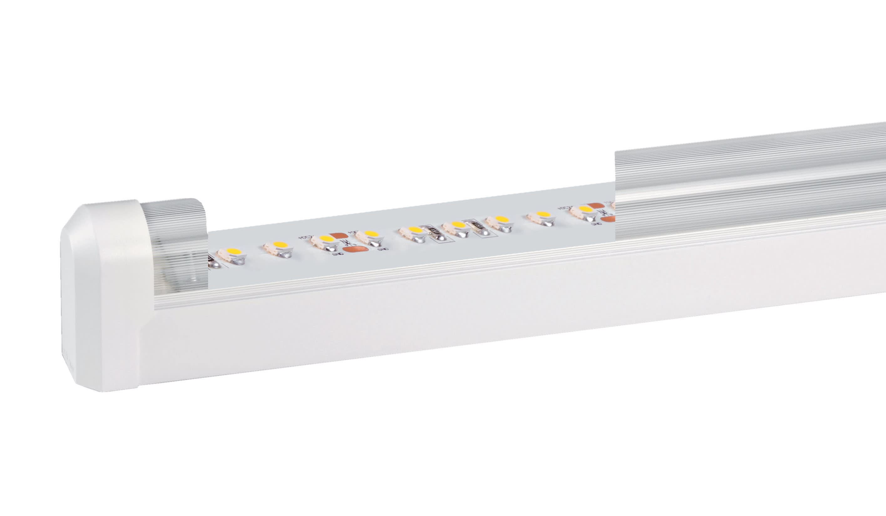 Réglette ONDINE G13 IP44 IK07, autorisée Volume 2, avec interrupteur, avec tube T8 LED 9W 4000K, 650lm sortants (vasque opaline - LOR =75%)