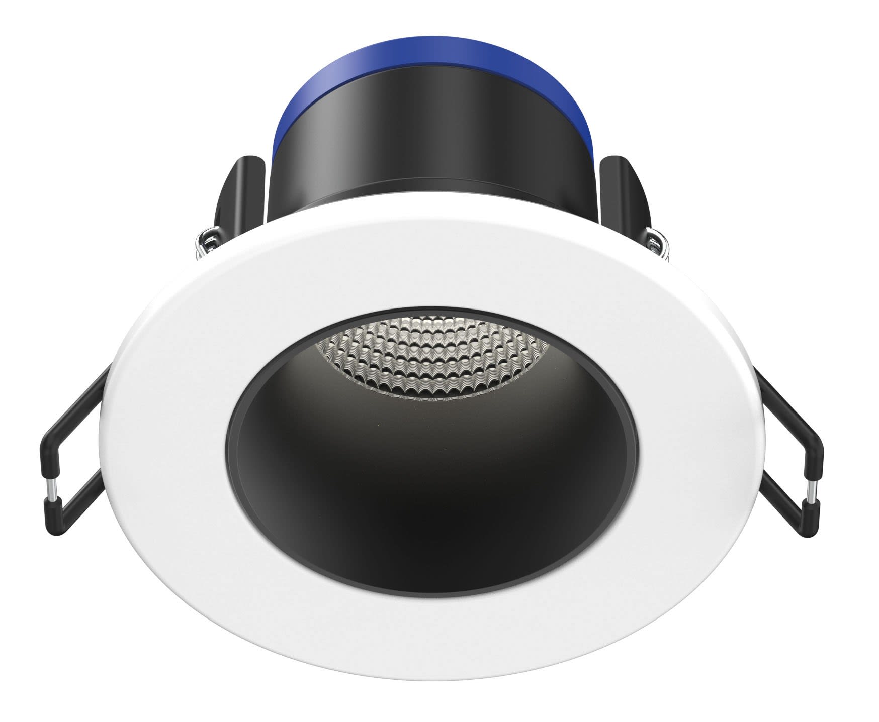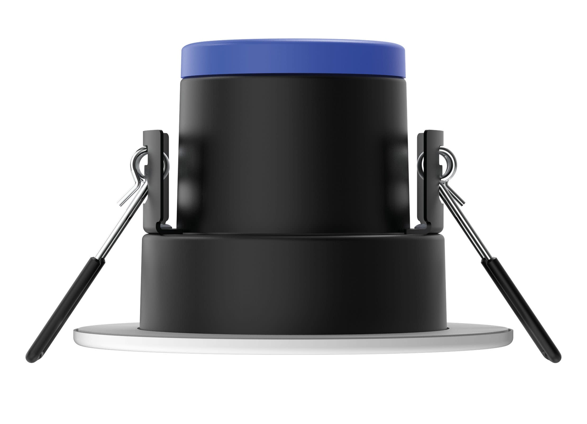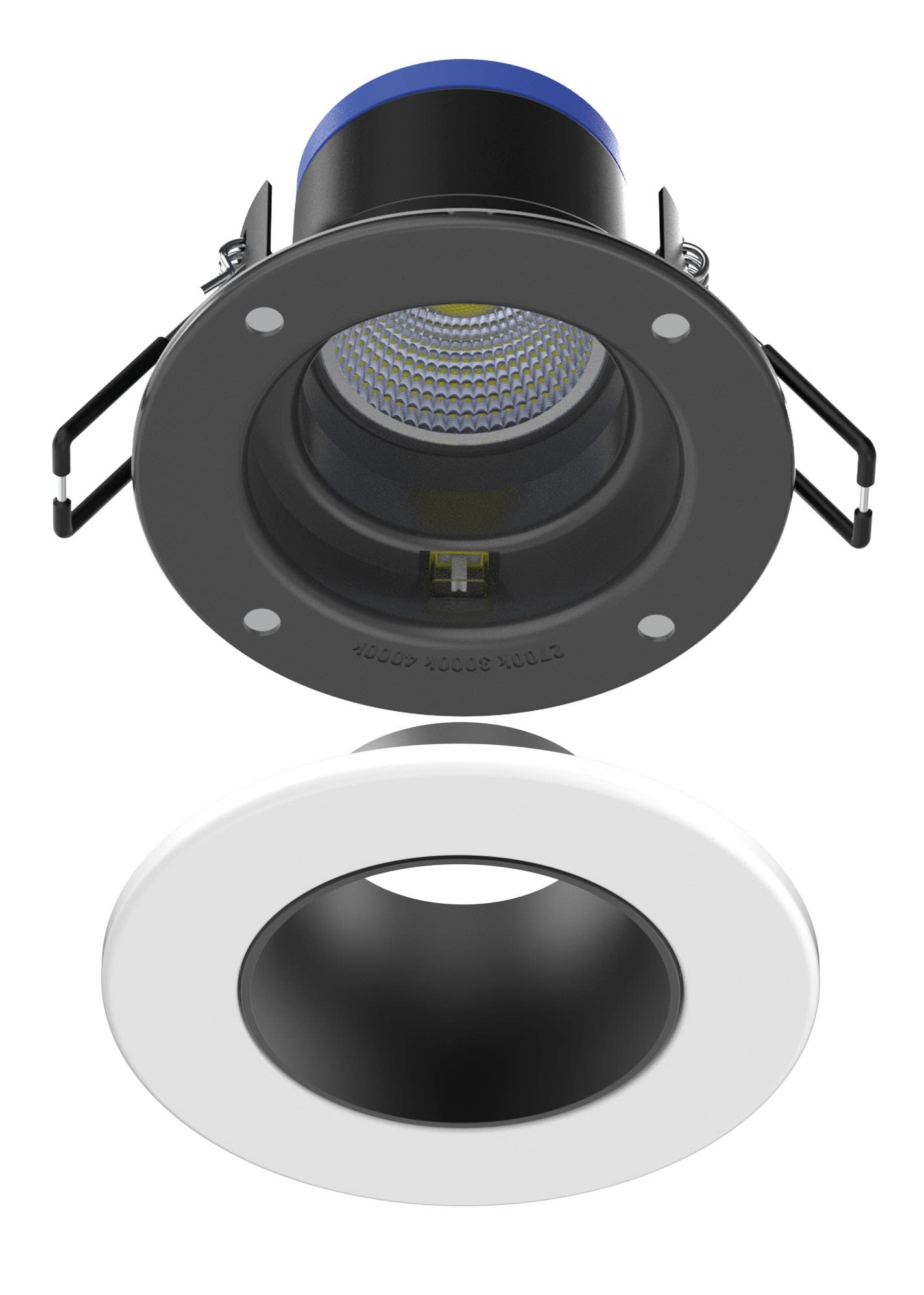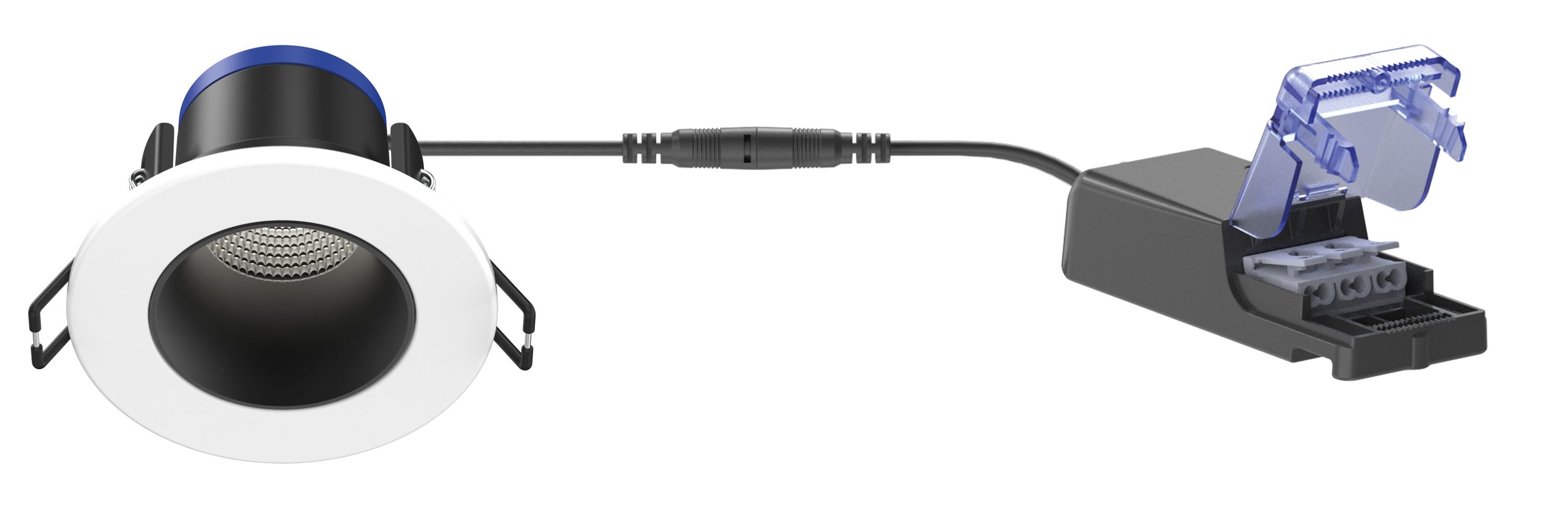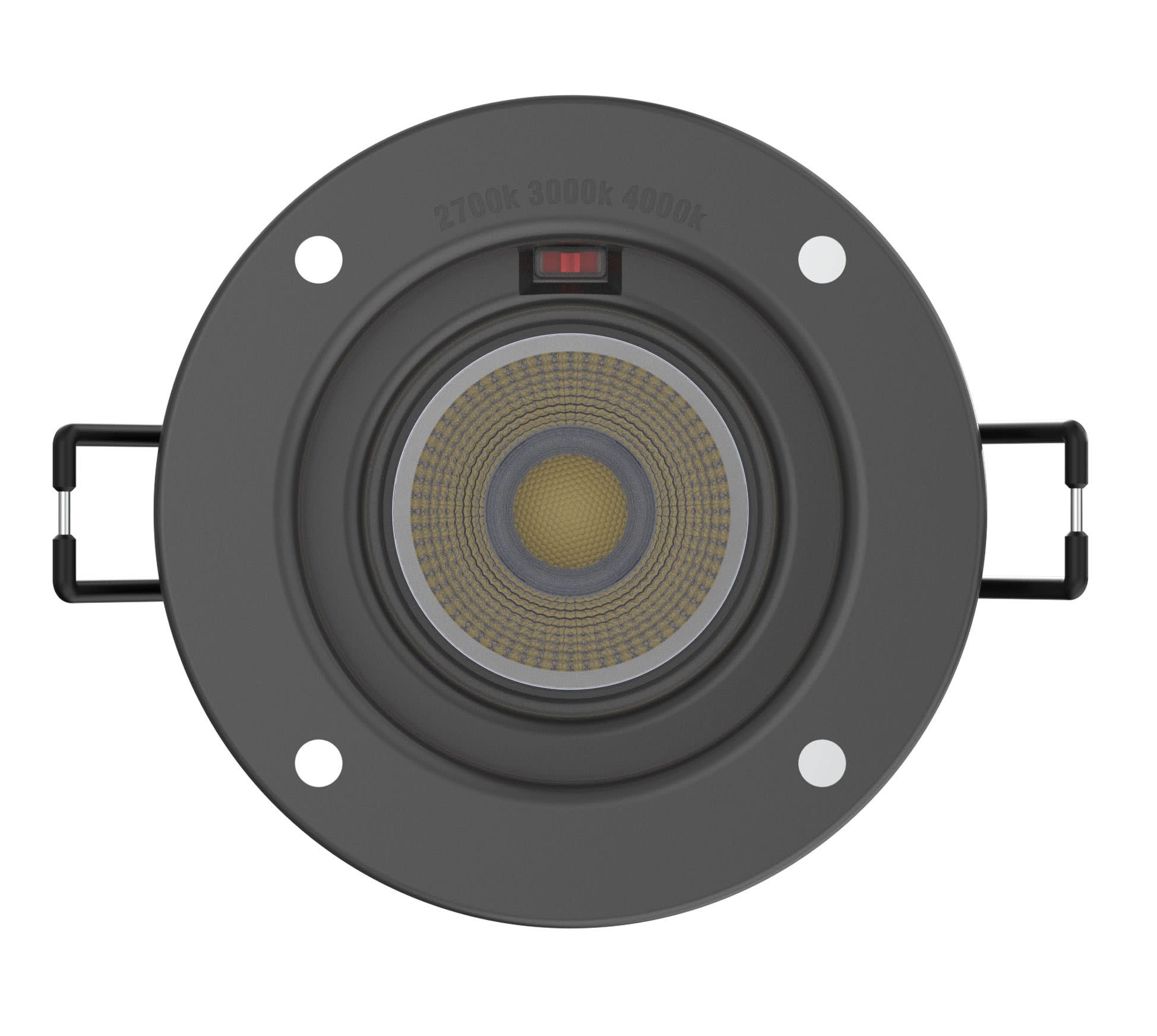 Encastrement standard (68mm) pour boite DCL, tout type de plafond, avec recouvrement de 90mm - IP65, compatible Volume 1, idéal pour les pièces humides (Cuisine, Salle bain, Toilettes, etc) - Dimmable, convient pour les variateurs - Compatible norme RT2012, bâtiment BBC - Recouvrable par tous types d?isolants - Faisceau de 40° - Durée de vie de 50'000 heures - Alimentation déportée avec bornier de connexion automatique déporté et repiquable, pour un montage simplifié rapide et sans outils - Technologie CCT ARIC?: deux températures de couleur dans un seul produit avec commutation en face avant pour sélection de couleur possible après la pose. - Collerette décorative Blanc exterieur / Noire intérieure de finition aimantée - Taux d?éblouissement optimisé avec UGR<19