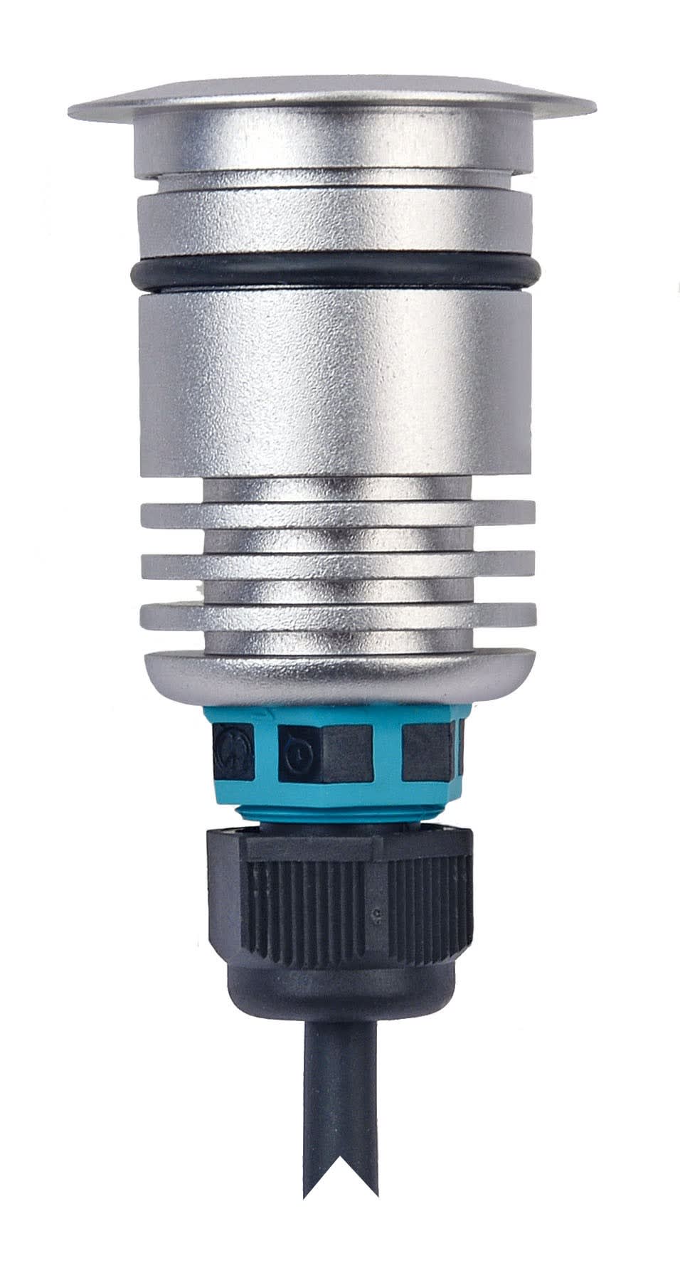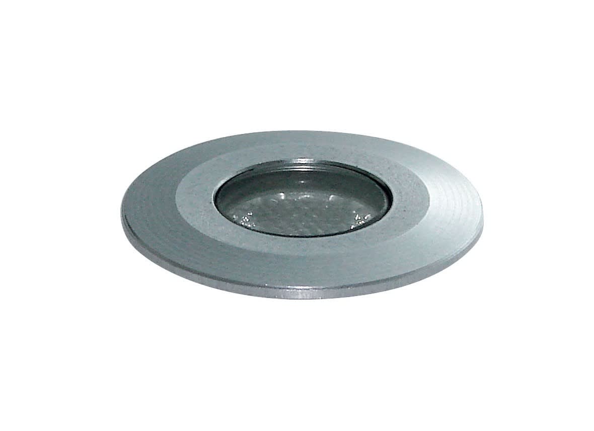 Encastré de sol Extérieur IP67 IK08, rond Ø42, collerette aluminium gris, LED 24V DC 2W 3000K, flux sortant 102lm, 30000H