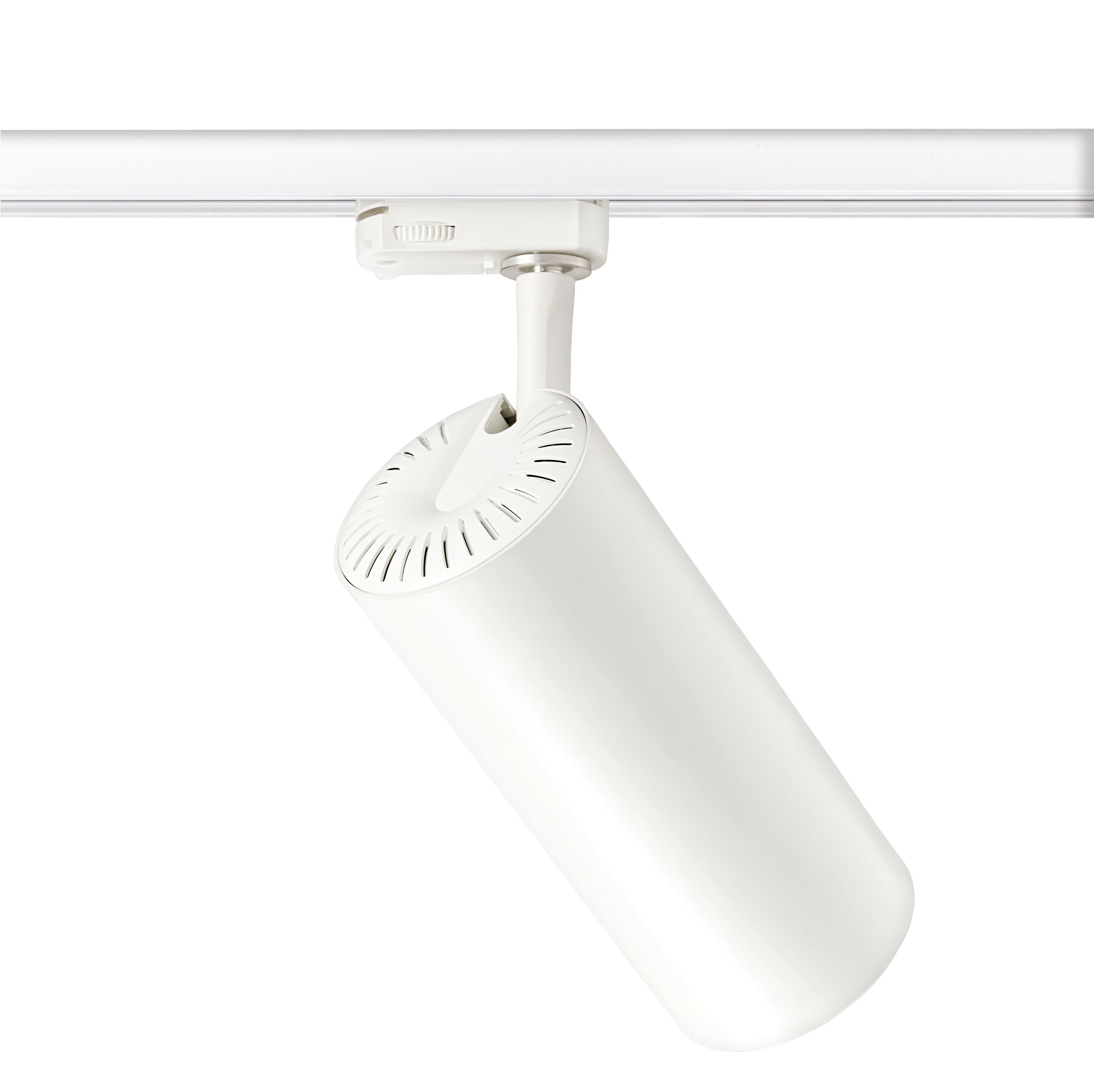 Projecteur pour Rail 3 allumages 023, aluminium blanc, faisceau 36°, LED intégrée 31,7W 3000K, flux sortant 3000 lumens, 30000H