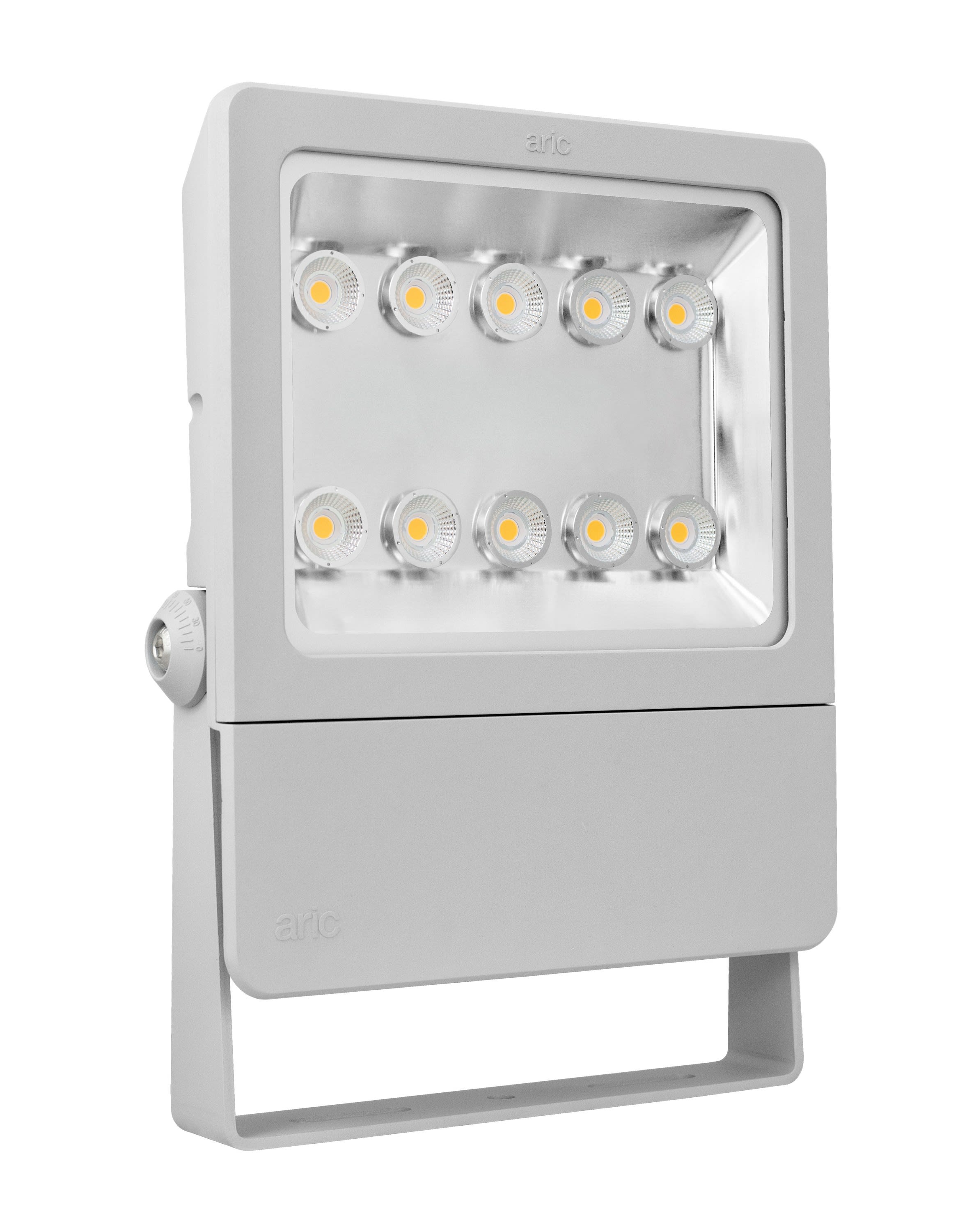 Conçu pour respecter l’arrêté 2018 relatif à la réduction des nuisances lumineuses - IP65, pour une résistance accrue en extérieur - Vitre en verre trempé IK08 - Capacité de résistance de 480H au brouillard salin - Efficacité : 19800lm pour 180W, soit 110lm/W - Angle symétrique 30° - Durée de vie de 50'000 heures - Alimentation intégrée - Cable H05RN-F 3G 1mm2 en longueur 0.2m fourni - Dimensions et poids restreint pour une installation discrète