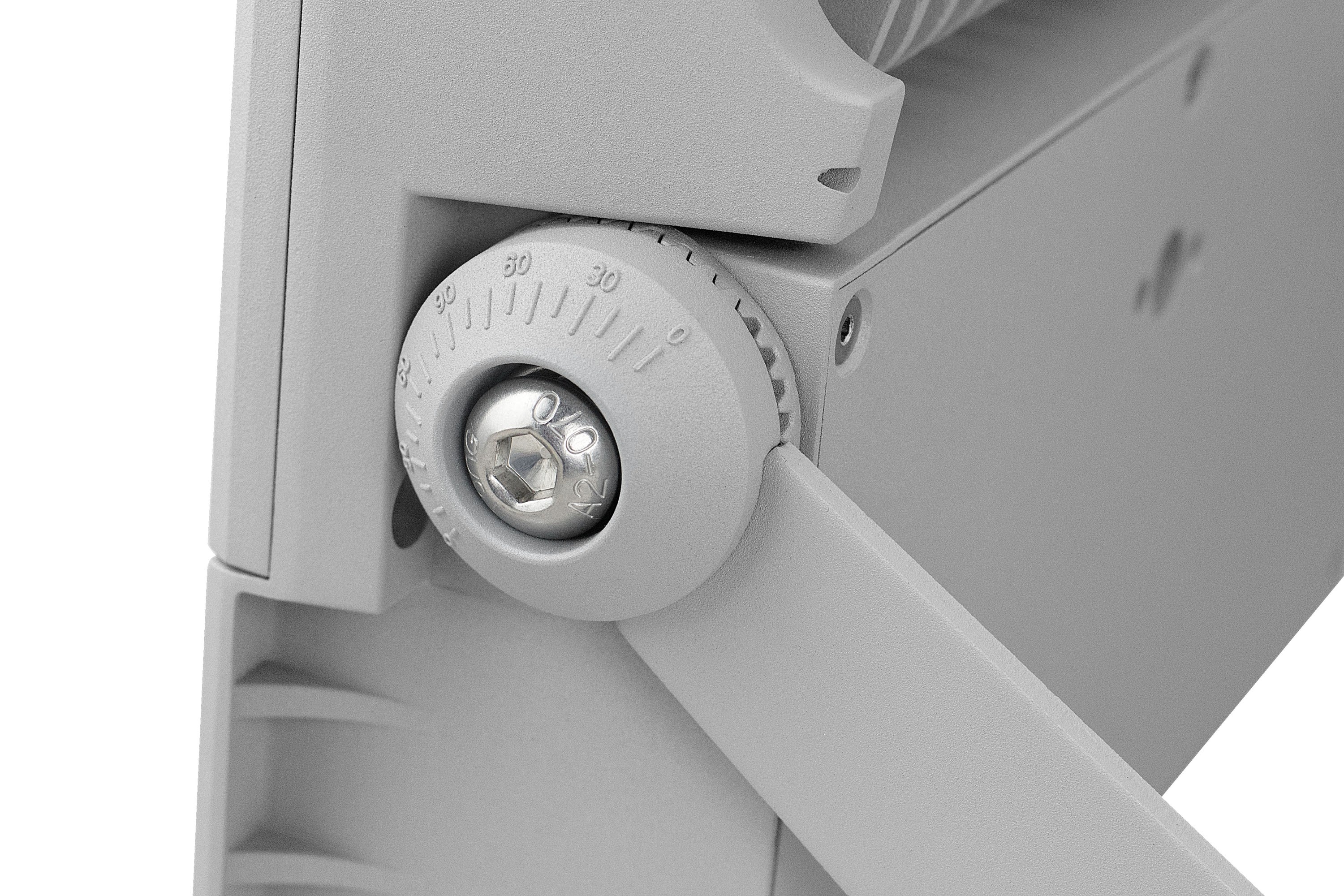 Projecteur extérieur TWISTER 3 LED IP65 IK08, gris (RAL 9006), faisceau symétrique 30° LED intégré 178W 4000K 19800lm IRC80, intérieur/extérieur, durée de vie 50000h, test BS 480h, connecteur IP68 précâblé pour installation facile