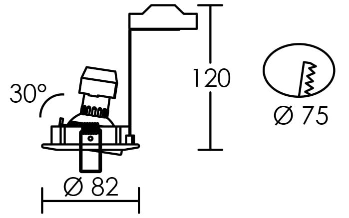 Encastré GU10 rond, basculant, nickel, fourni, avec lampe LED 7W 4000K 670 lumens 15000h.
