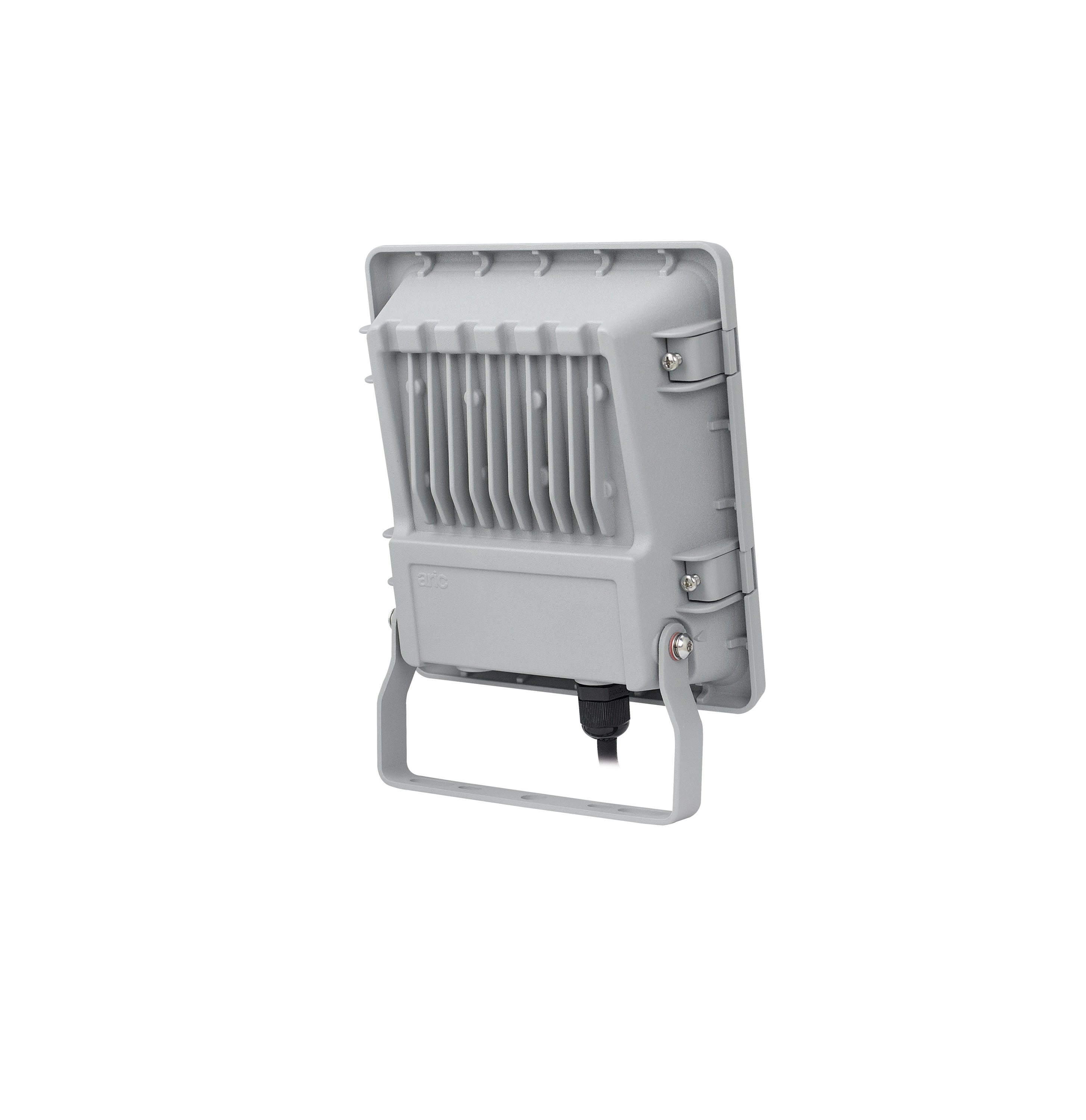 Projecteur Extérieur LED IP65 IK08, gris, symétrique, faisceau 90°, LED intégré 45W 4000K, flux sortant 4800 lumens (IRC >80), détecteur de mouvement Microwave réglable intégré, télécommande fournie