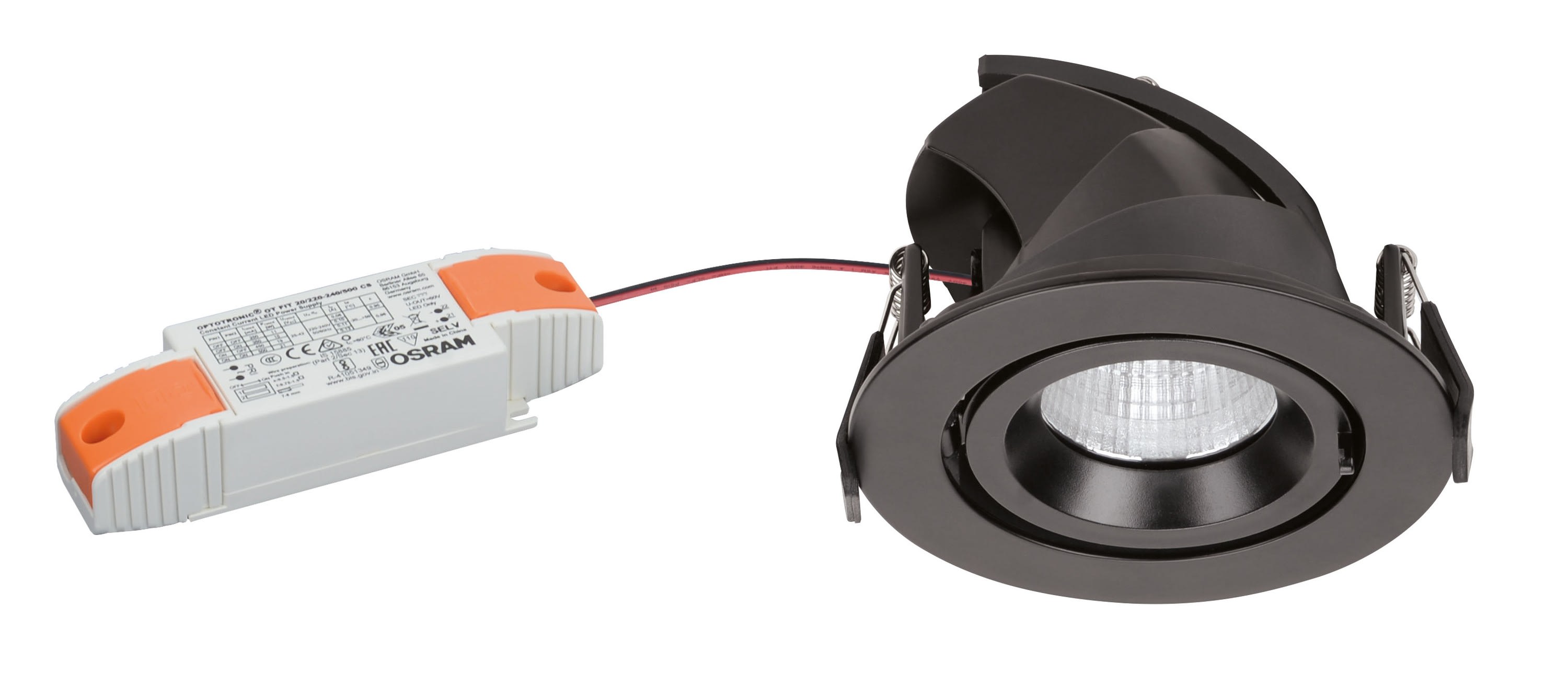 Downlight rond, orientable, en aluminium noir, 50°, LED intégrée 14,4W 4000K 1300 lumens 50000h avec boite de connexion repiquable sans outil