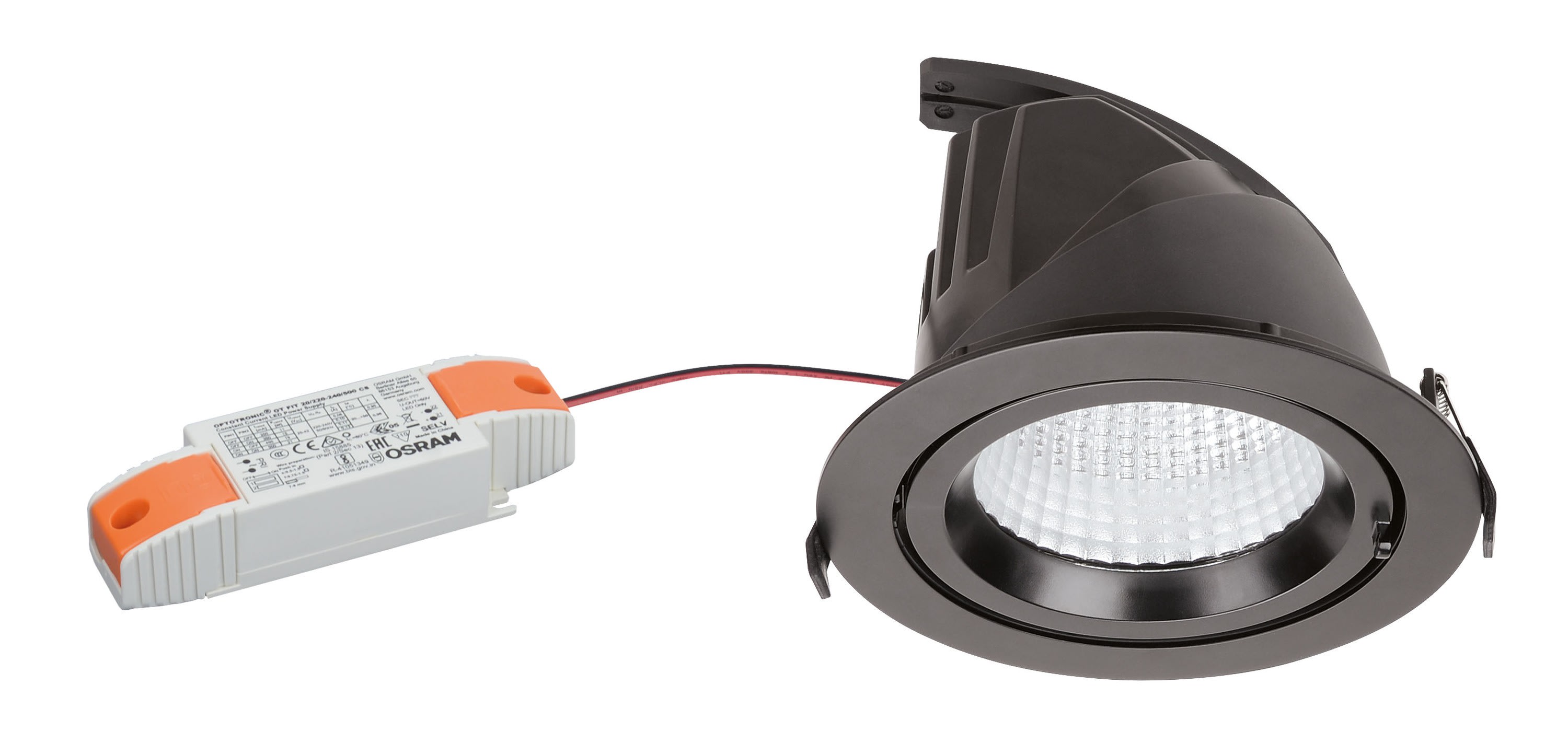Downlight rond, orientable, en aluminium noir, 70°, LED intégrée 36,6W 3000K 3600 lumens 50000h avec boite de connexion repiquable sans outil