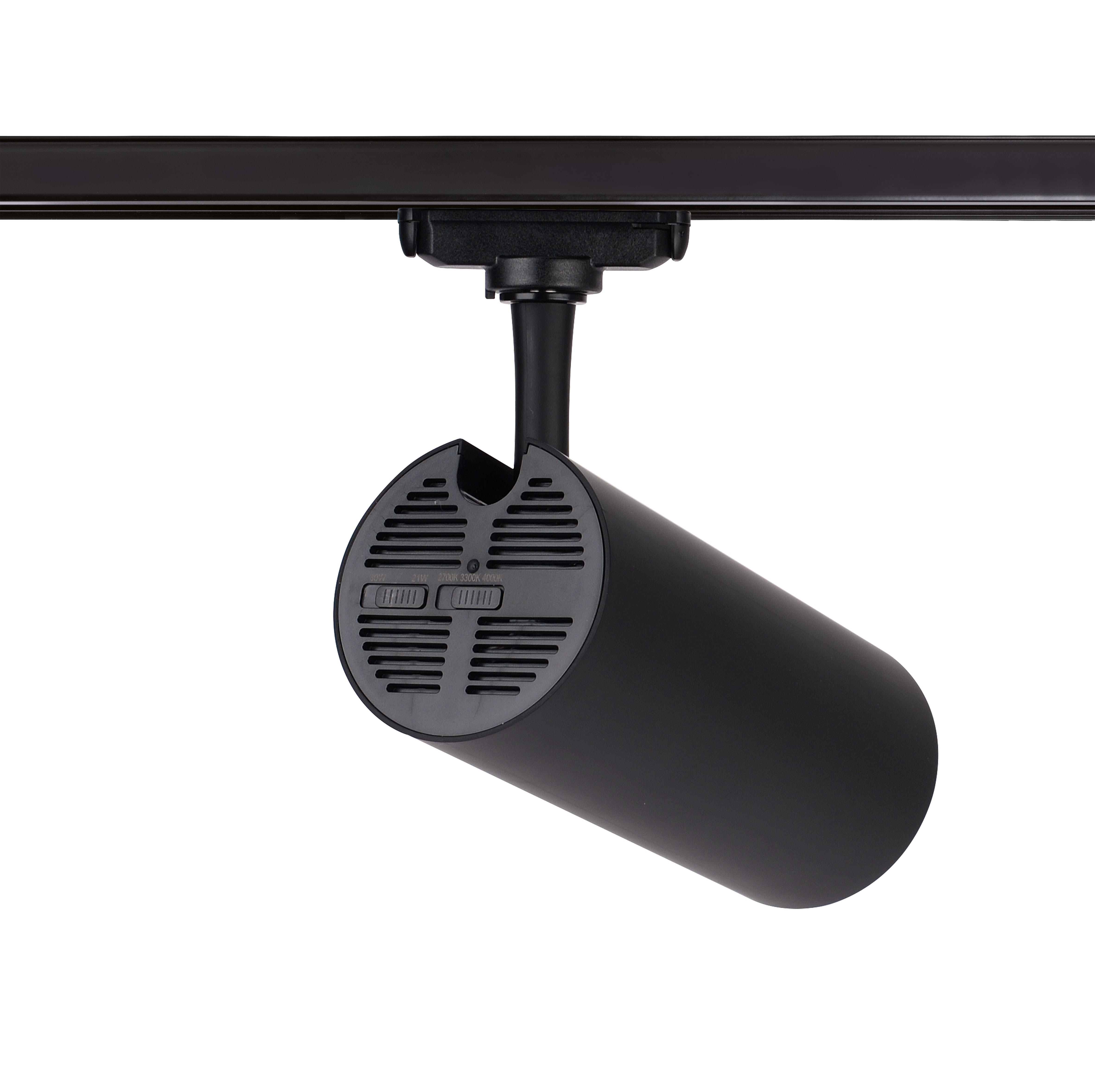 Pour l'éclairage commercial, nouveau luminaire sur rail monophasé, POLARIS 029 45° 21/30W 3CCT NOIR, Deux puissances réglables à l’arrière du spot, Technologie CCT : 2700 K / 3300 K/4000 K Interrupteur à l’arrière du spot, Éclairage sans scintillement, Éclairage à 45°