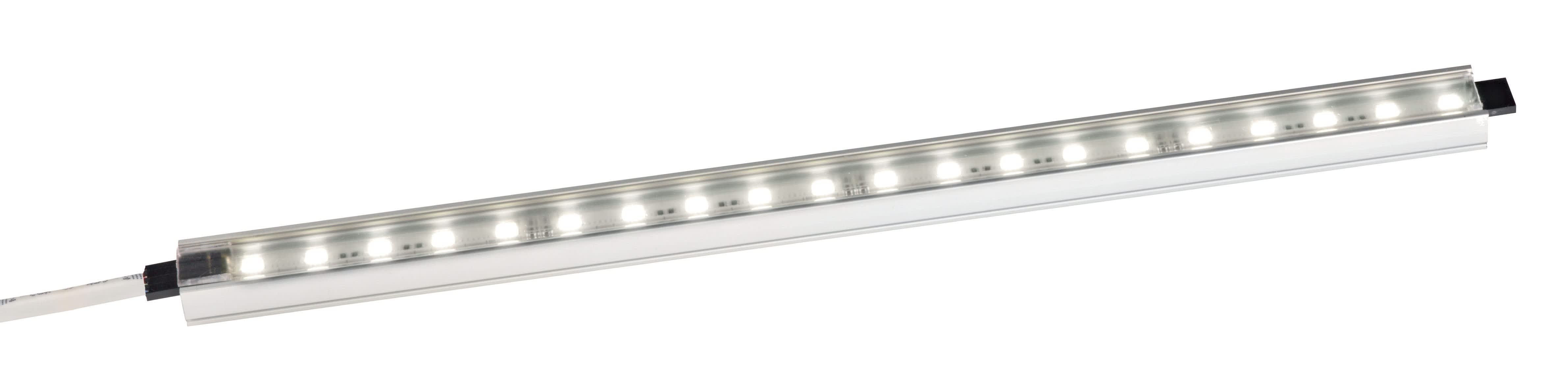 Eclairage d'agencement SLIM LED 1,24M 4000K 24V, Corps aluminium, Diffuseur polycarbonate opalin, 65 LED/m, 17,2 W/m, Dimmable en PWM, Avec connecteurs, Installation multiposition, Montage en ligne continue, maxi 6 m