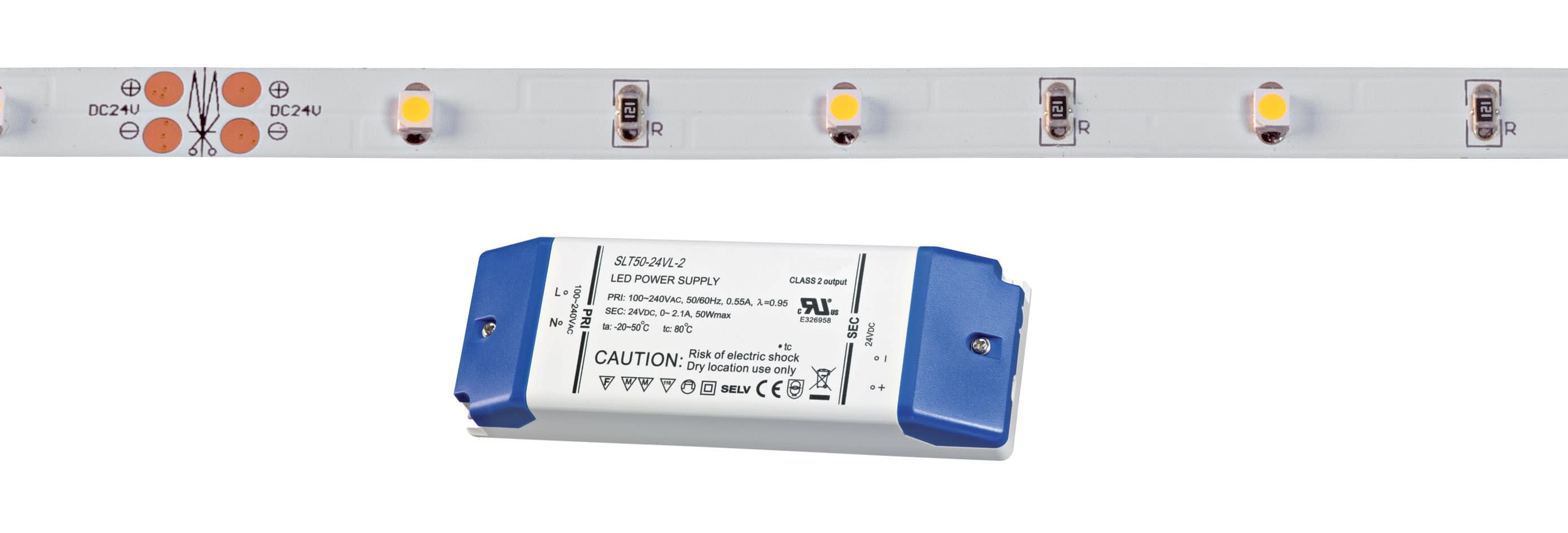 Aric - FLEXO-Ruban n/protg. IP20 24V 2,6W/m 30LED/m 3000K 150 lm/m, lg 10m, alim.incl. - 55236