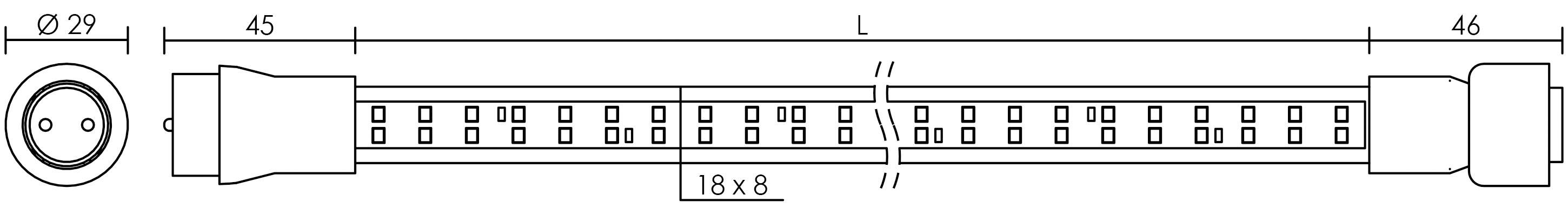 Ruban LED protégé pour utilisation intérieure ou extérieure, IP65 IK08 230V, 180 LED/m 120W 4000K 8000 lumens, longueur 10m, livré en rouleau. Cordon d'Alimentation non fourni, à commander séparément - voir code 55264.