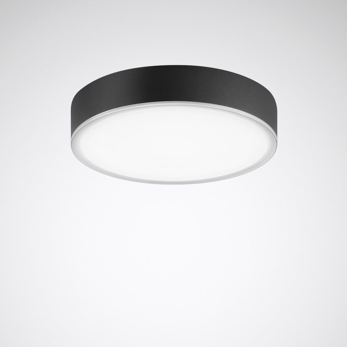 Downlight apparent rond, Hauteur de montage 60 mm. Pour montage mural et au plafond. Avec diffuseur microprismatique CDP. À répartition symétrique extensive des intensités lumineuses. angle d’éclairage 95°. Classification UGR selon la méthode tabulée (EN 12464-1) avec valeurs de réflexion 80/60/30. Effet lumineux harmonieux grâce à une sortie de lumière uniformément éclairée. Flux lumineux du luminaire et couleur de la lumière fixes. Flux lumineux du luminaire 1700 lm, puissance raccordée 15 W, rendement lumineux maximale du luminaire 113 lm/W. Teinte de lumière blanc chaud, température de couleur (CCT) 3000 K, indice général de rendu des couleurs (IRC) Ra > 80. Tolérance de localisation chromatique (initialement MacAdam) ≤ 3 SDCM. Durée de vie assignée moyenne L80 (tq 25 °C) = 70.000 h. La source lumineuse est remplaçable conformément aux exigences d'écoconception (Règlement (UE) 2019/2020). Corps du luminaire en fonte d’aluminium. Surface à revêtement anthracite (similaire à DB 703). Dimensions extérieures de la collerette Ø 316 mm, hauteur du luminaire 60 mm. Classe électrique (EN 61140) : I, indice de protection (norme EN 60529) : IP40, degré de résistance aux chocs selon la norme CEI 62262 : IK06, température d’essai au fil incandescent selon la norme CEI 60695-2-11 : 650 °C. Température ambiante admissible (ta): -20 °C à 25 °C. Poids: 2.6 kg. Avec bornier de raccordement jusqu’à 2,5 mm, dispositif antitraction et repiquage secteur. Avec driver, dimmable (DALI). Appareillage conf. au standard DALI 2 (EN 62386). L'appareillage est remplaçable conformément aux exigences d'écoconception (Règlement (UE) 2019/2020). Ce luminaire qui est prêt au monitoring (MOR) fournit des données d’exploitation permettant une surveillance ou une maintenance prédictive, il est donc compatible avec les services de TRILUX Monitoring Services. Le produit répond aux exigences essentielles des directives européennes applicables et de la loi sur la sécurité des produits et porte le marquage CE. Le luminaire est en outre certifié ENEC par un organisme de contrôle indépendant.