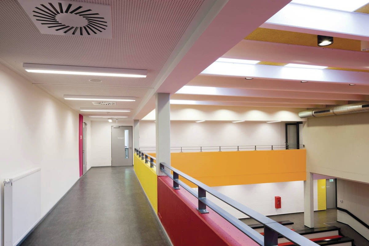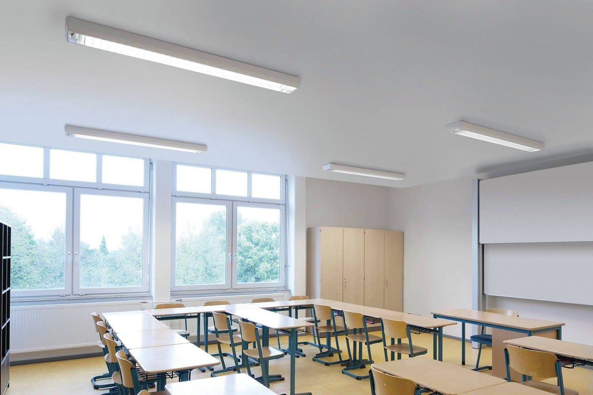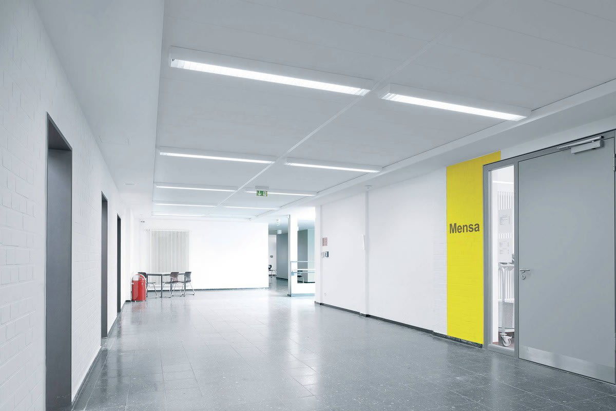 Plafonnier à LED pour applications individuelles ou applications en ligne continue. Avec optique prabolique, grand brillant, anodisée. Fixation de l’optique et mise à la terre automatique grâce aux fermetures à contact frotteur. Optique rabattable et décrochable des deux côtés sans outil. À répartition symétrique limitée et extensive des intensités lumineuses. Taux d'éblouissement selon classification UGR (EN 12464-1) < 19. Compatible avec les écrans informatiques selon la norme EN 12464-1 grâce à des luminosités réduites L ≤ 1 500 cd/m2 pour angle d’éclairage supérieur à 65 °, de manière omnidirectionnelle. Flux lumineux du luminaire et couleur de la lumière fixes. Flux lumineux du luminaire 5500 lm, puissance raccordée 52 W, rendement lumineux maximale du luminaire 106 lm/W. Teinte de lumière blanc chaud, température de couleur (CCT) 3000 K, indice général de rendu des couleurs (IRC) Ra > 80. Tolérance de localisation chromatique (initialement MacAdam) ≤ 3 SDCM. Durée de vie assignée moyenne L80 (tq 25 °C) = 35.000 h., Durée de vie assignée moyenne L70 (tq 25 °C) = 50.000 h. La source lumineuse est remplaçable conformément aux exigences d'écoconception (Règlement (UE) 2019/2020). Corps de luminaire en tôle d’acier. Surface à revêtement blanc (similaire à RAL 9016). Profil design, plat, coudé de 55° de manière marquée côté pièce. Dimensions (L x l): 1548 mm x 197 mm, hauteur du luminaire 75 mm. Veuillez commander séparément les embouts frontaux pour les luminaires individuels ou les extrémités de lignes continues. Corps de luminaire à baguettes d'accouplement intégrées pour lignes continues à alignement précis avec optiques continues. Classe électrique (EN 61140) : I, indice de protection (norme EN 60529) : IP20, degré de résistance aux chocs selon la norme CEI 62262 : IK02, température d’essai au fil incandescent selon la norme CEI 60695-2-11 : 850 °C. Température ambiante admissible (ta): -20 °C à 25 °C. Poids: 4.3 kg. Avec driver, dimmable (DALI). Appareillage conf. au standard DALI 2 (EN 62386). Possibilité de commutation et de gradation du luminaire au moyen de la fonction bouton-poussoir via les bornes de commande DALI (TouchDim). L'appareillage est remplaçable conformément aux exigences d'écoconception (Règlement (UE) 2019/2020). Ce luminaire qui est prêt au monitoring (MOR) fournit des données d’exploitation permettant une surveillance ou une maintenance prédictive, il est donc compatible avec les services de TRILUX Monitoring Services. Le produit répond aux exigences essentielles des directives européennes applicables et de la loi sur la sécurité des produits et porte le marquage CE. Le luminaire est en outre certifié ENEC par un organisme de contrôle indépendant.