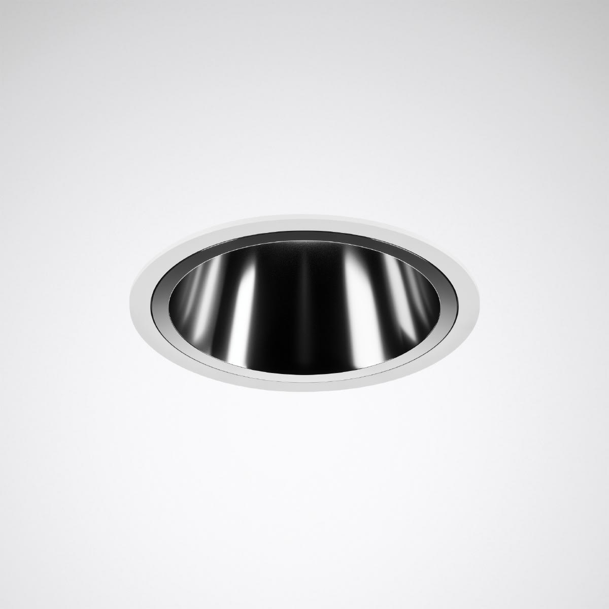 Downlight LED compact au format rond. Downlight encastré avec bord pour découpes de plafond. Convient pour une utilisation dans les entreprises certifiées HACCP, IFS et/ou BRC Global Standard Food. Découpe dans le plafond Ø 210 mm, Profondeur d’encastrement 130 mm. Des collerettes d’adaptation pour l’installation dans des découpes de plafond aux dimensions inadaptées sont disponibles en accessoires, à commander séparément. Avec réflecteur en plastique, métallisé, grand brillant. Le système optique avec une combinaison précisément adaptée de lentilles LED et d'éléments anti-éblouissants offre un très grand confort visuel accompagné d'une performance d'éclairage très élevée. Caractéristique du faisceau Extreme Wide Flood. angle d’éclairage 81°. Guidage de la lumière via une technologie de collimateurs/lentilles. Flux lumineux du luminaire et couleur de la lumière fixes. Flux lumineux du luminaire 2600 lm, puissance raccordée 25 W, rendement lumineux maximale du luminaire 104 lm/W. Teinte de lumière blanc neutre, température de couleur (CCT) 4000 K, indice général de rendu des couleurs (IRC) Ra > 90. Tolérance de localisation chromatique (initialement MacAdam) ≤ 3 SDCM. Durée de vie assignée moyenne L80 (tq 25 °C) = 100.000 h., Durée de vie assignée moyenne L90 (tq 25 °C) = 50.000 h. La source lumineuse est remplaçable conformément aux exigences d'écoconception (Règlement (UE) 2019/2020). Boîtier, anneau de montage et dissipateur thermique en fonte d'aluminium. Surface à revêtement blanc (similaire à RAL 9016). Dimensions extérieures de la collerette Ø 228 mm. Classe électrique (EN 61140) : II, indice de protection (norme EN 60529) : IP20, Indice de protection par le dessous : IP54, degré de résistance aux chocs selon la norme CEI 62262 : IK06, température d’essai au fil incandescent selon la norme CEI 60695-2-11 : 850 °C. Température ambiante admissible (ta): -20 °C à 25 °C. Poids: 1.6 kg. Branchement au secteur via borne enfichable avec équipement de repiquage secteur. La connexion entre le luminaire et l'appareillage est enfichable. Luminaire câblé sans halogène. Avec appareillage électronique, à gradation numérique (DALI). Appareillage conf. au standard DALI 2 (EN 62386). Possibilité de commutation et de gradation du luminaire au moyen de la fonction bouton-poussoir via les bornes de commande DALI (TouchDim). L'appareillage est remplaçable conformément aux exigences d'écoconception (Règlement (UE) 2019/2020). Ce luminaire qui est prêt au monitoring (MOR) fournit des données d’exploitation permettant une surveillance ou une maintenance prédictive, il est donc compatible avec les services de TRILUX Monitoring Services. Le produit répond aux exigences essentielles des directives européennes applicables et de la loi sur la sécurité des produits et porte le marquage CE. Le luminaire est en outre certifié ENEC par un organisme de contrôle indépendant.