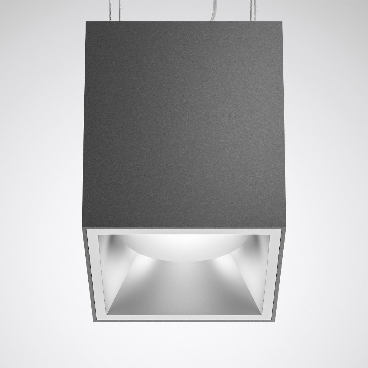 Spot encastré compact carré LED. Downlight pour un montage suspendu. Convient pour une utilisation dans les entreprises certifiées HACCP, IFS et/ou BRC Global Standard Food. Avec réflecteur en plastique, métallisé, brillant mat. Le système optique avec une combinaison précisément adaptée de lentilles LED et d'éléments anti-éblouissants offre un très grand confort visuel accompagné d'une performance d'éclairage très élevée. Caractéristique du faisceau Very Wide Flood. Compatible avec les écrans informatiques selon la norme EN 12464-1 grâce à des luminosités réduites L ≤ 3 000 cd/2 pour des angles d’éclairage supérieurs à 65 °, de manière omnidirectionnelle. Guidage de la lumière via une technologie de collimateurs/lentilles. Flux lumineux du luminaire et couleur de la lumière fixes. Flux lumineux du luminaire 2000 lm, puissance raccordée 19 W - 19 W, rendement lumineux maximale du luminaire 105 lm/W. Teinte de lumière blanc neutre, température de couleur (CCT) 4000 K, indice général de rendu des couleurs (IRC) Ra > 90. Tolérance de localisation chromatique (initialement MacAdam) ≤ 3 SDCM. Durée de vie assignée moyenne L80 (tq 25 °C) = 100.000 h., Durée de vie assignée moyenne L90 (tq 25 °C) = 50.000 h. La source lumineuse est remplaçable conformément aux exigences d'écoconception (Règlement (UE) 2019/2020). Boîtier et corps de refroidissement en aluminium moulé sous pression. Surface à revêtement noir (similaire à RAL 9005). Dimensions (L x l): 151 mm x 151 mm, hauteur du luminaire 175 mm. Classe électrique (EN 61140) : I, indice de protection (norme EN 60529) : IP20, degré de résistance aux chocs selon la norme CEI 62262 : IK06, température d’essai au fil incandescent selon la norme CEI 60695-2-11 : 850 °C. Température ambiante admissible (ta): -20 °C à 25 °C. Poids: 2.7 kg. Branchement au secteur via borne enfichable avec équipement de repiquage secteur. La connexion entre le luminaire et l'appareillage est enfichable Avec appareillage électronique, à gradation numérique (DALI). Appareillage conf. au standard DALI 2 (EN 62386). Possibilité de commutation et de gradation du luminaire au moyen de la fonction bouton-poussoir via les bornes de commande DALI (TouchDim). L'appareillage est remplaçable conformément aux exigences d'écoconception (Règlement (UE) 2019/2020). Le produit répond aux exigences essentielles des directives européennes applicables et de la loi sur la sécurité des produits et porte le marquage CE. Le luminaire est en outre certifié ENEC par un organisme de contrôle indépendant.